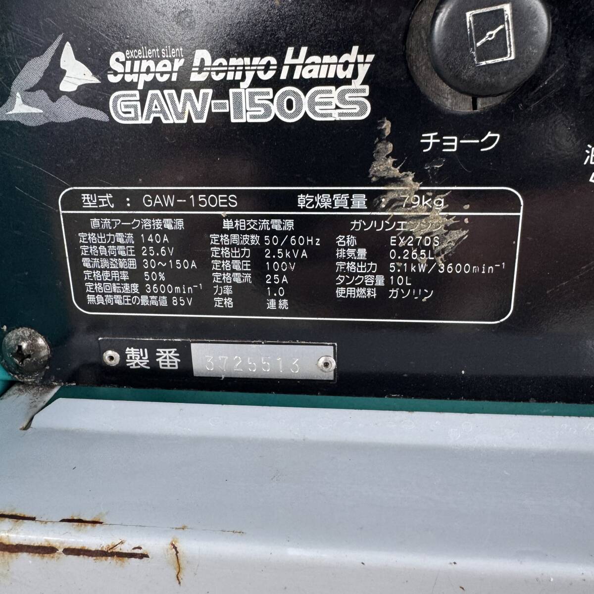 △ y 岐阜発/ デンヨー/ GAW-150ES/ エンジン式/ 発電溶接機/実動 動画バッテリー欠品/アーク溶接確認/現状品/ 管40c/ R7.9/26 △ |