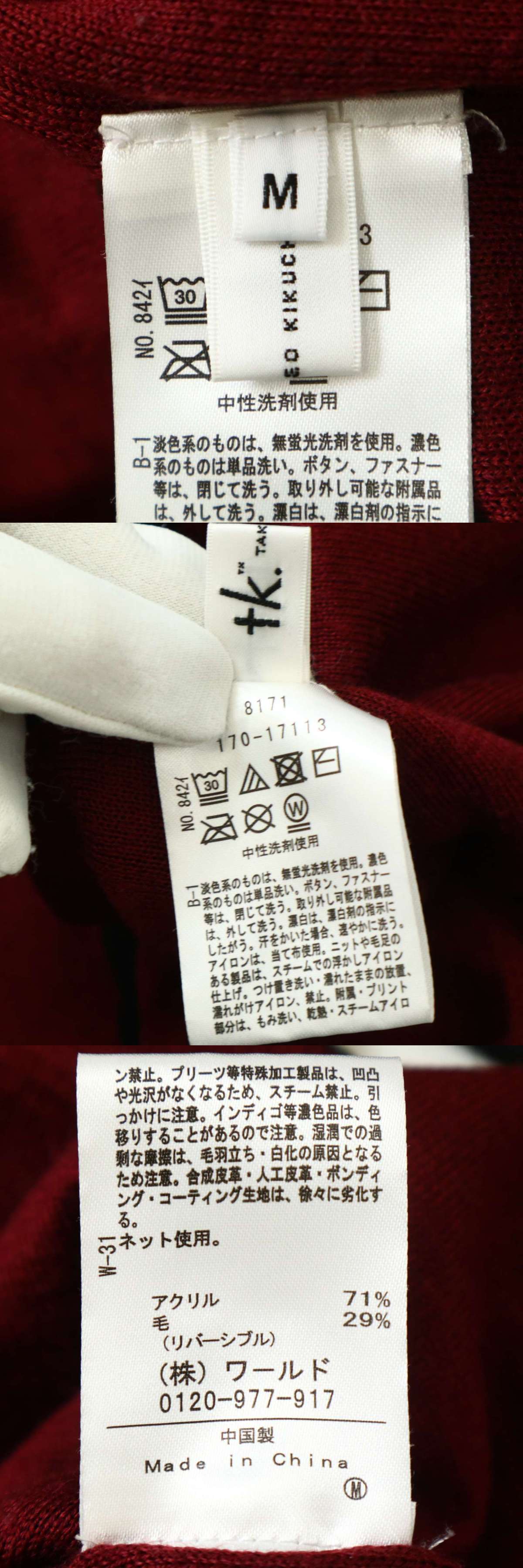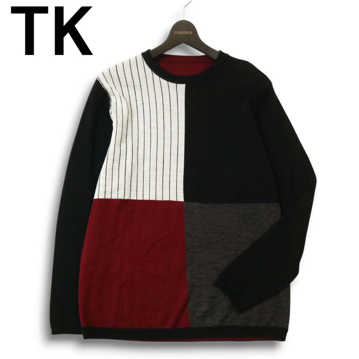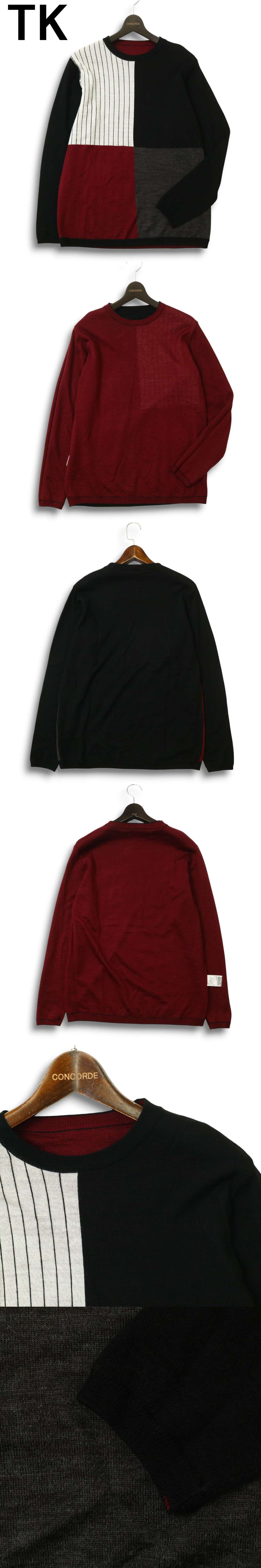 tk TAKEO KIKUCHI タケオキクチ 2way リバーシブル★ ウール混 カラーブロック クルーネック ニット セーター Sz.M メンズ