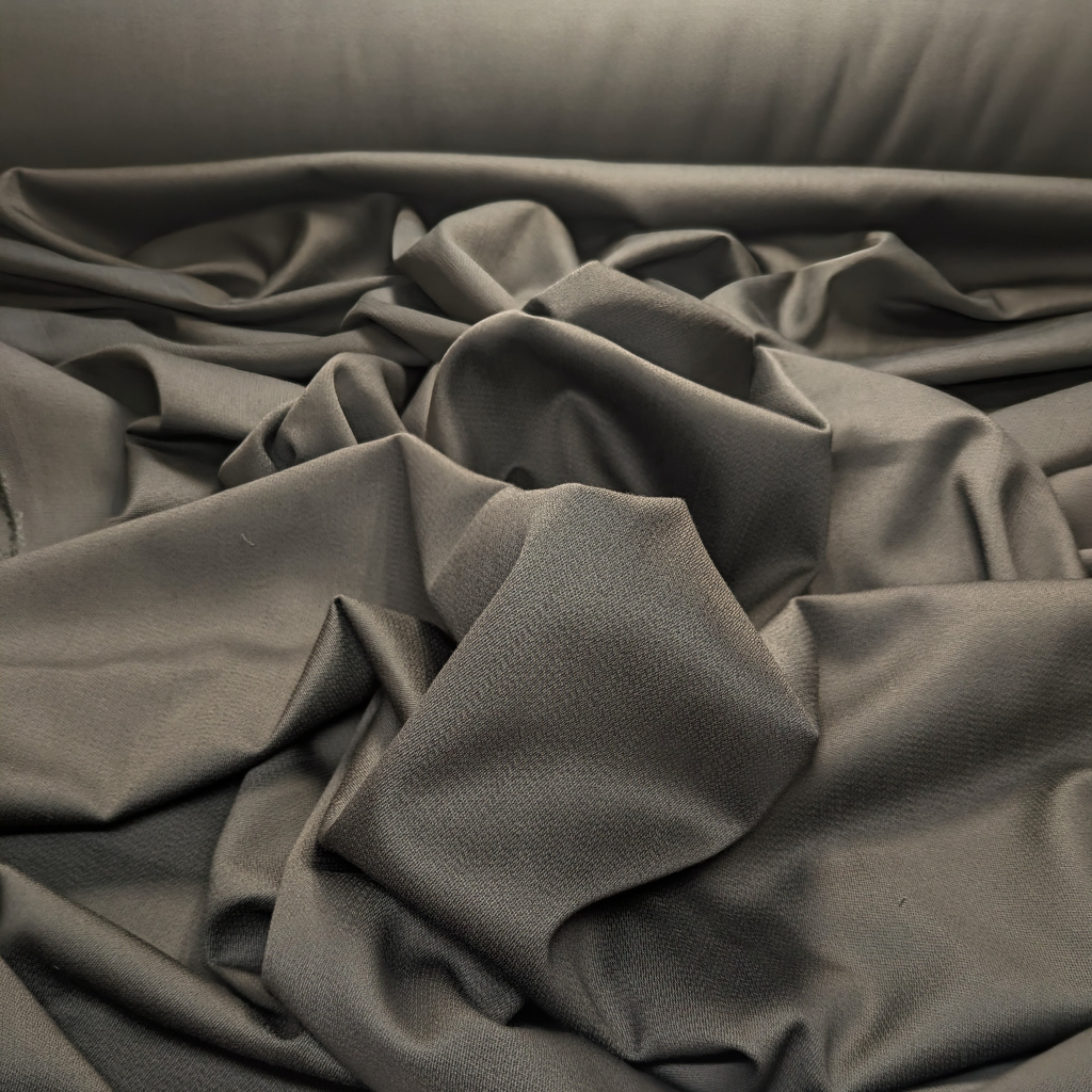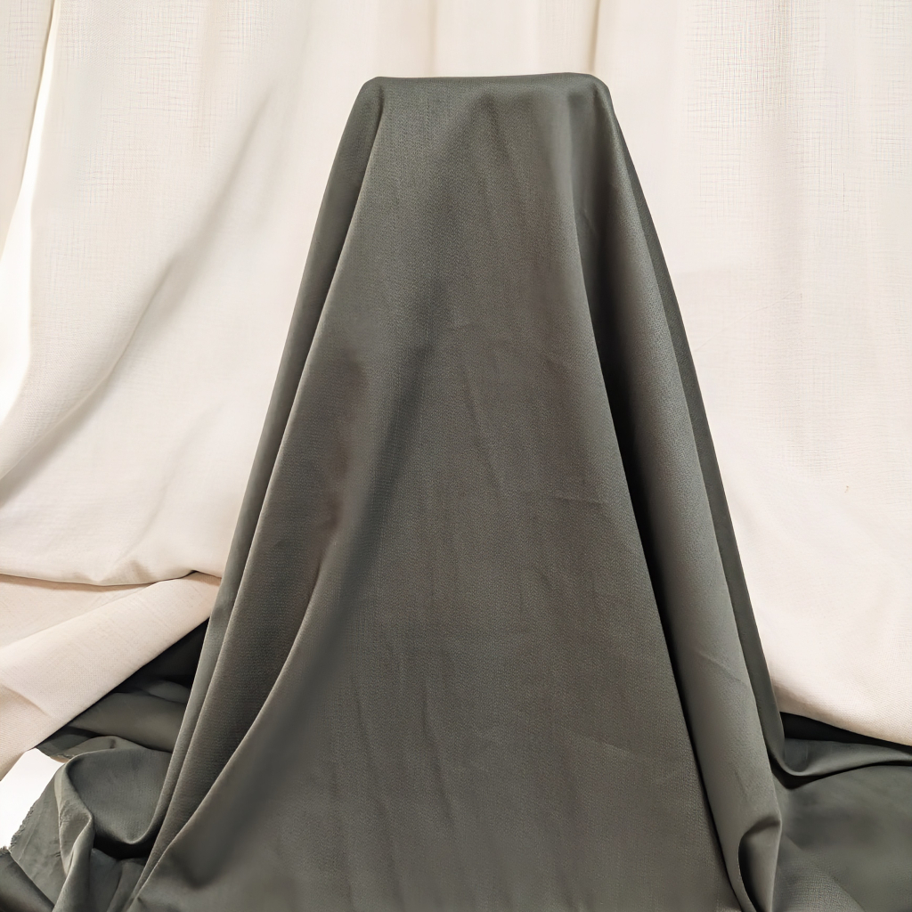 高級綿でフシ糸がなく綺麗なコンパクト綿の糸を使用したサテン地にドビーでシャドーストライプを入れたストレッチ素材です。 糸の撚りを甘くすることで、高密度に織られても柔らかく滑らかな風合いになり、張りを抑えたソフトな風合いで糸の撚りを甘くすることで、重みも軽減され、シワにもなり難くALLシーズンにアウターからボトムやパンツまで幅広くご使用できる人気素材になります。 甘撚りの為に自然なナチュラルなストレッチ性もあります。 ウールのスーツ素材の柄で多様されているドビーを使った繊細なシャドーストライプが綿の無地ではないエレガント感ある生地に仕上げてます。 お色は,これからのシーズンのアウター向きダークカーキです。 サイズ 125cm×2m 混率 綿100%