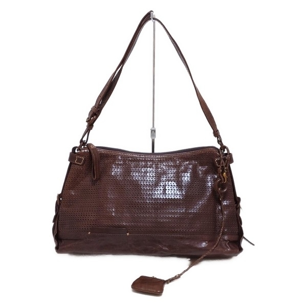 ゲンテン genten ショルダーバッグ - レザー ダークブラウン カットワーク バッグ