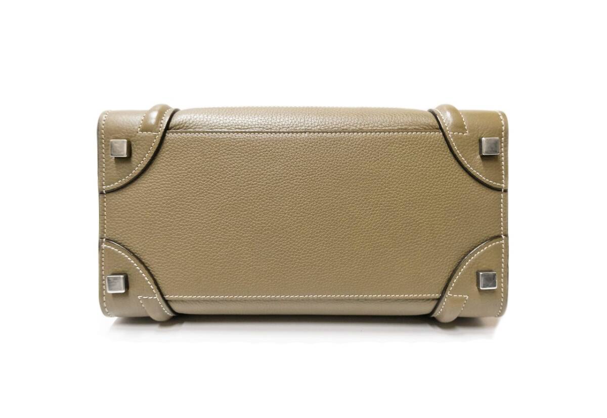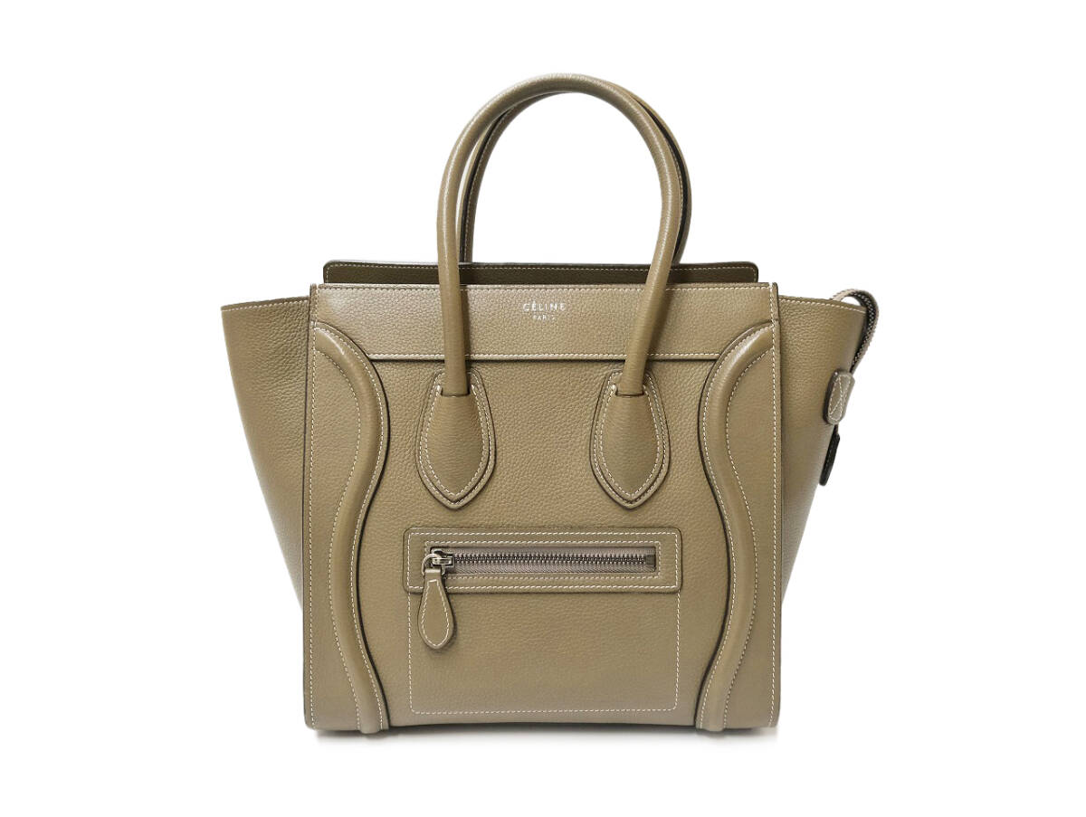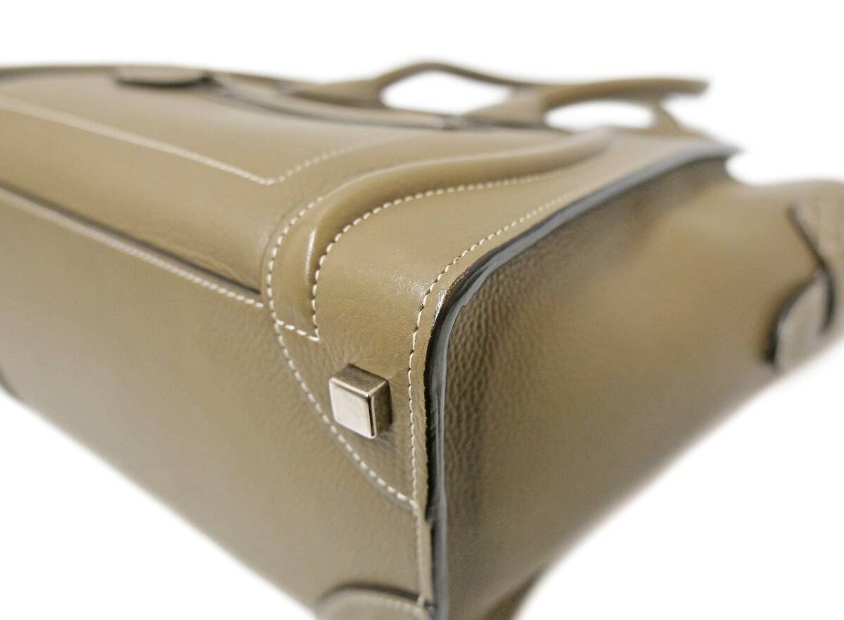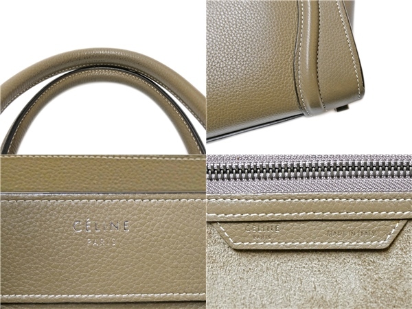 セリーヌ ラゲージ マイクロショッパー グレージュ レザー ハンドバッグ