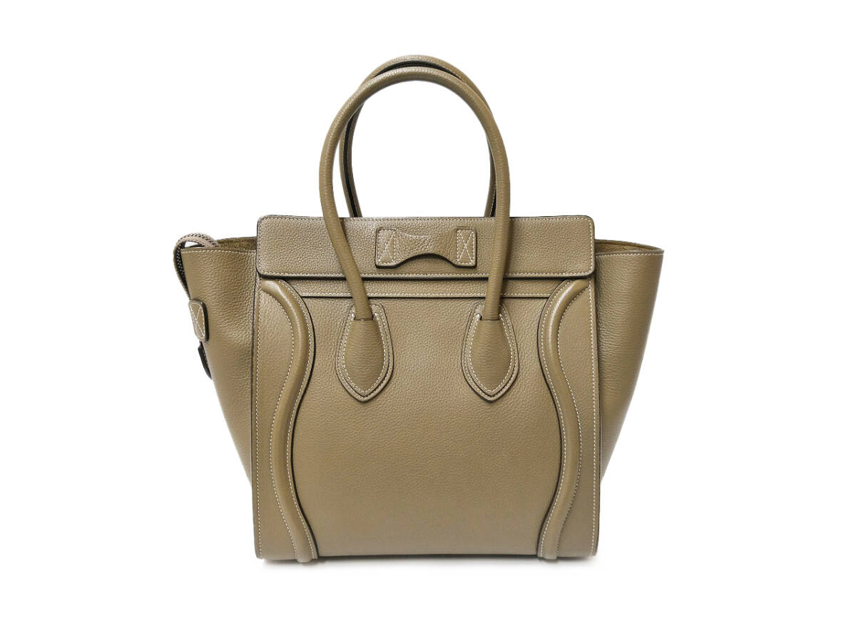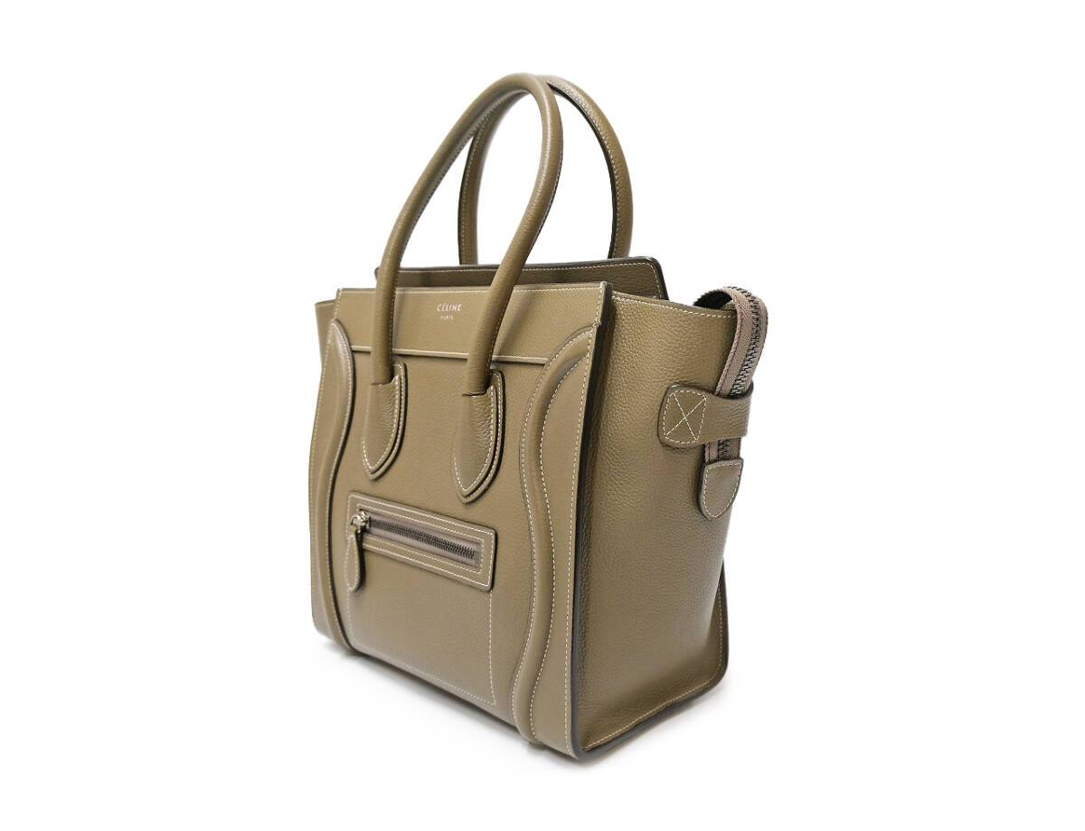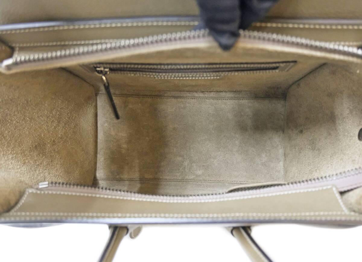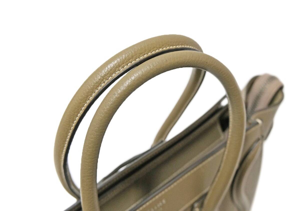 セリーヌ ラゲージ マイクロショッパー グレージュ レザー ハンドバッグ