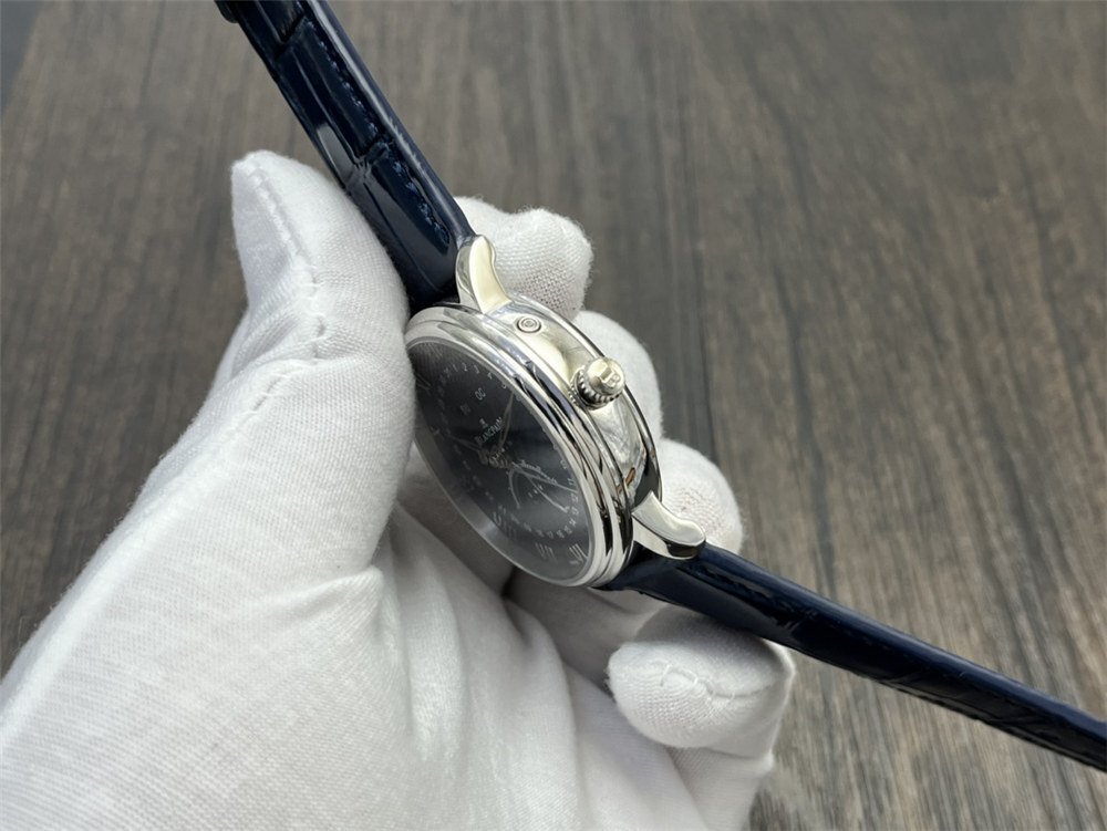 ブランド:Blancpain 型号:6654-1529-55B 素材: 18kホワイトゴールド ムーブメント: 自動巻き ベルト: ブルー 文字盤: ブルー ケースサイズ:40MM 腕周り:約17-21cm 付属品:ブランド保存箱 ※まず時間を9時から12時まで設置してから、曜日を調整します。 美しさと耐久性のために、ベルトには高圧処理が施されています。新しいベルトは、最初は少し硬くなりますが、しばらくすると柔らかくなります。 時計の時間を調整するときは、時計の針を時計回りに調整するのが正解です。 |