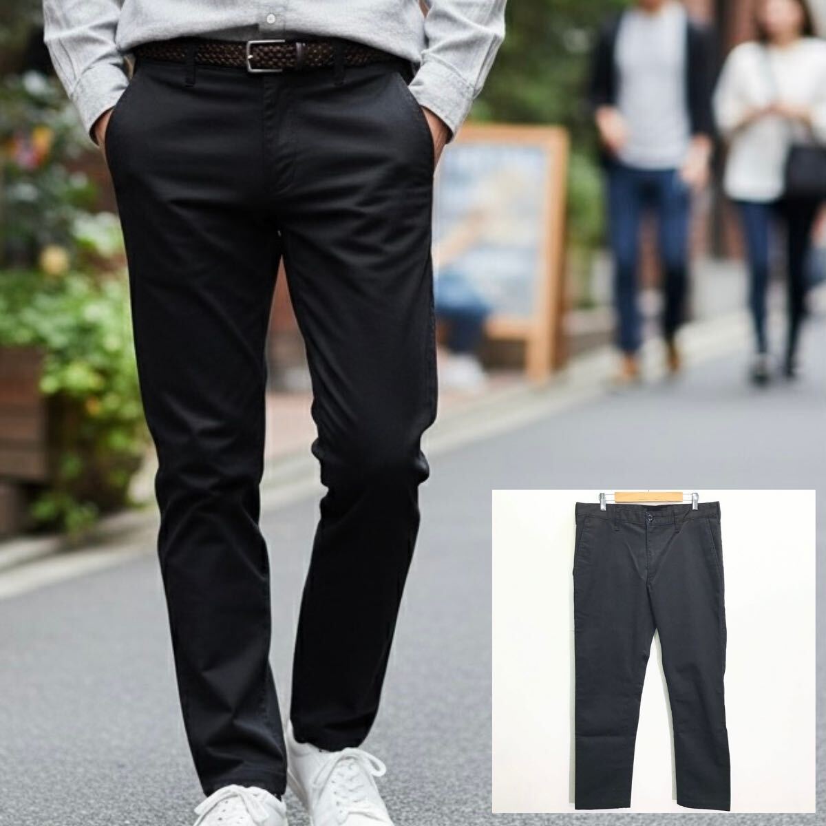 この度は私の商品をご覧頂きありがとうございます。頻繁に商品出品致しますのでフォロー頂けたら嬉しいです。 サイズ: 82cm 平置き時: 腰幅42㎝、全長98㎝、股下71㎝、裾幅18㎝。 ※素人採寸考慮 万能パンツ◎ユニクロの大人気商品◎【UNIQLO】の防風ストレッチスリムフィットチノになります!!トレンドのブラックコーデにも使えるアイテム!!ビジネスシーンにもGOOD!! 目立つダメージやよごれはありませんので、まだまだ着用していただけます。 他にも沢山出品しておりますので下のマイオークションからチェックしてみてください!当方の商品はすべて一点ものですので買わなければもう手に入りません!完全売切り!この機会がラストチャンス! 【注意】 発送方法は発送時トラブル防止の為、 【飛脚宅配便 60サイズ 2kg】 発送のみです。福島県から発送致します。正確な送料は佐川急便HPから確認ください。離島、沖縄は除く。 商品管理上、当方商品すべて出品後包装済みの為、其々の発送となりますので他の商品との同梱不可をご注意ください。