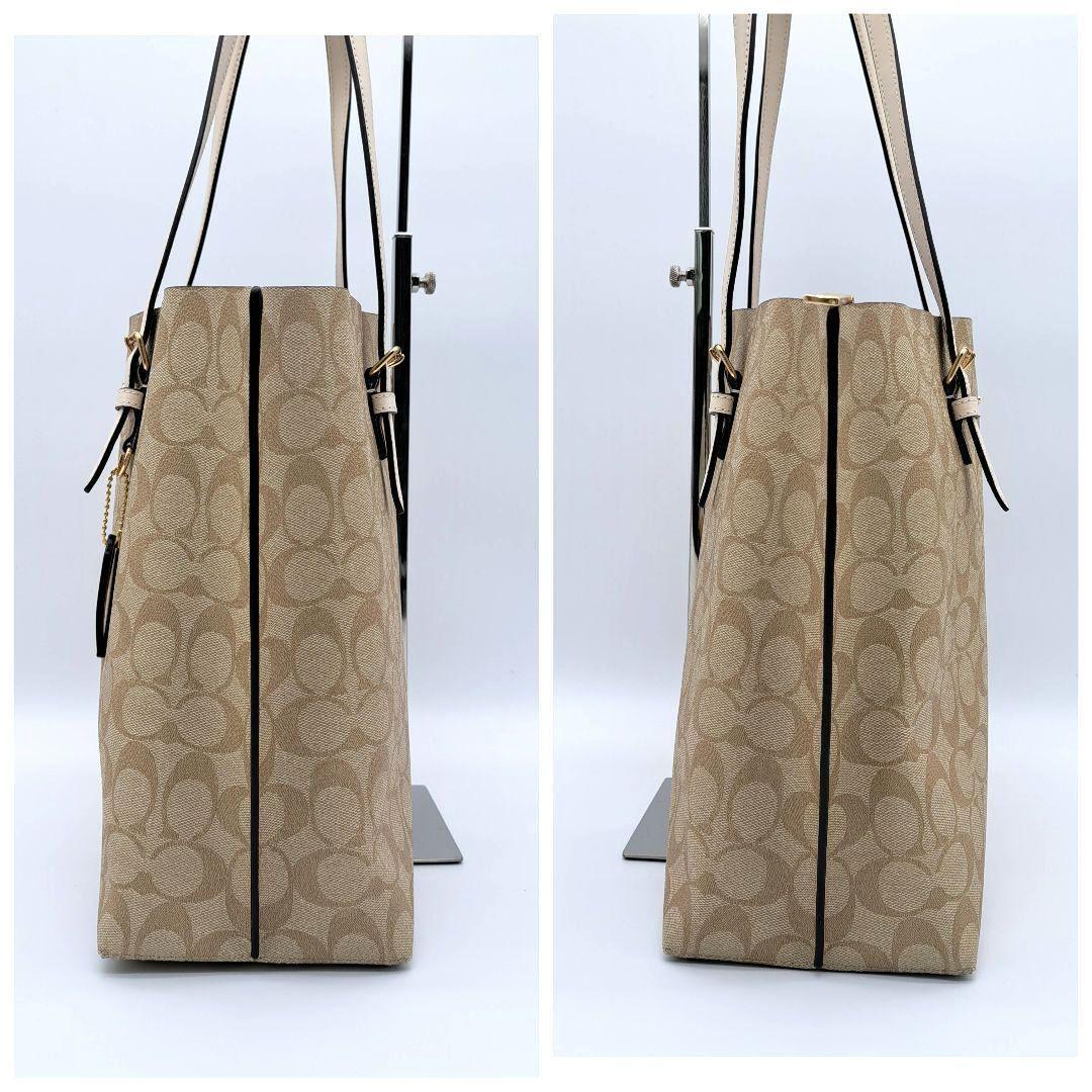 すっきり収納しやすい横長トート バッグ。A4サイズが入る2つのオープンポケットのほか、中央には貴重品が入るジップポケット付き。通勤&通学でお使いいただけます。