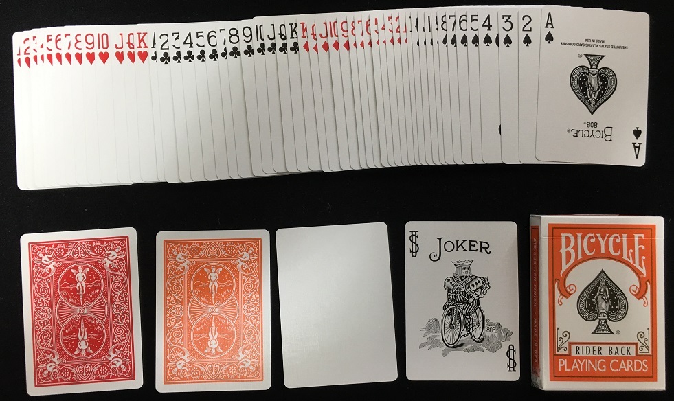 ジョーカー1枚,ダブルバック(橙・橙)1枚,ダブルバック(橙・赤)1枚,ブランクフェイス1枚が同梱されています.