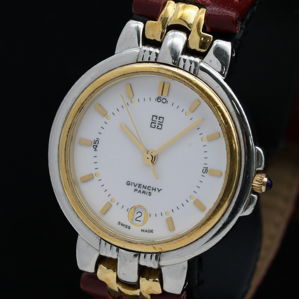 1円 稼働 ジバンシイ ラウンド QZ ホワイト文字盤 デイト メンズ腕時計 0583000 9RET MST