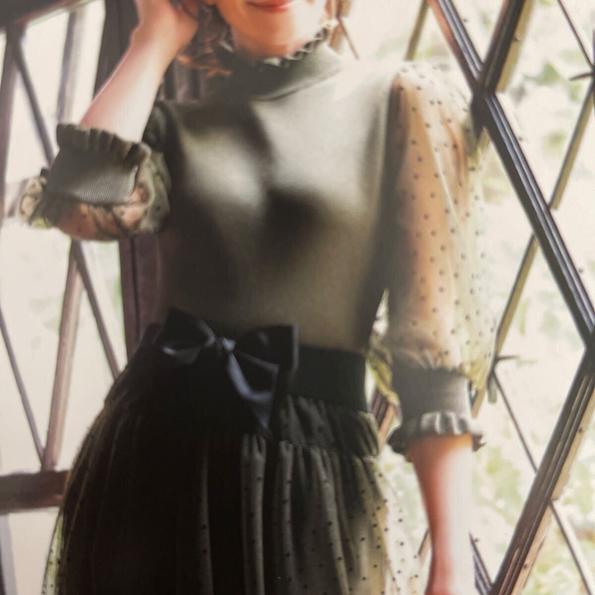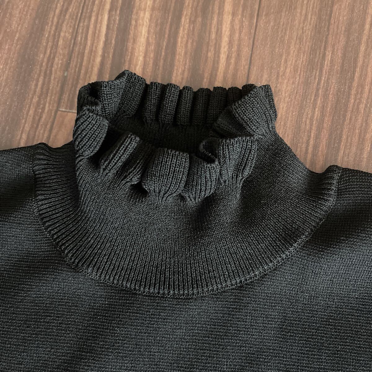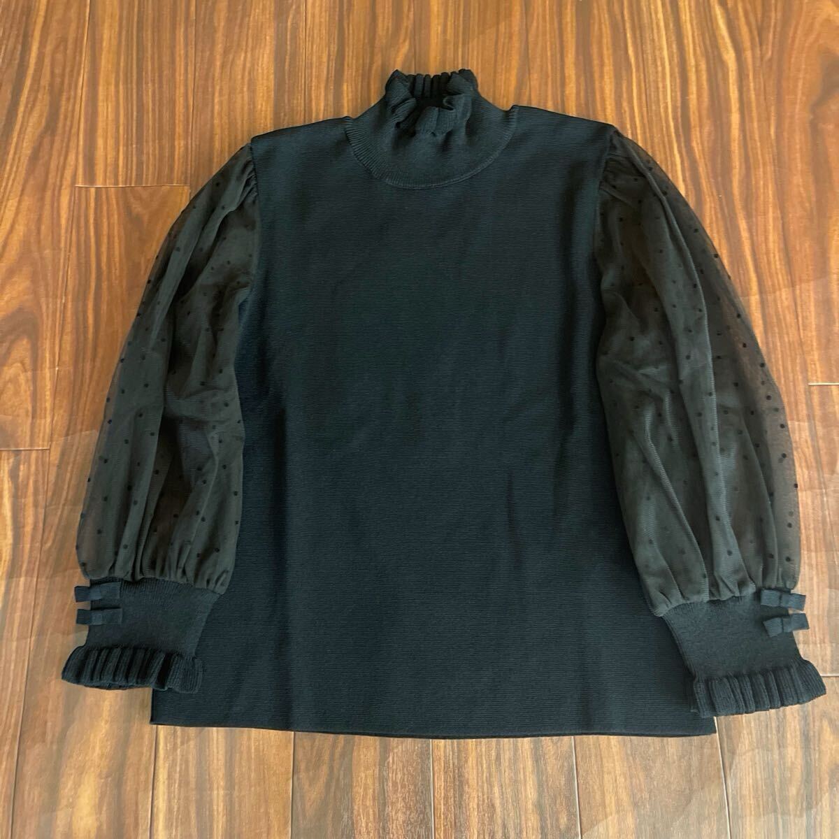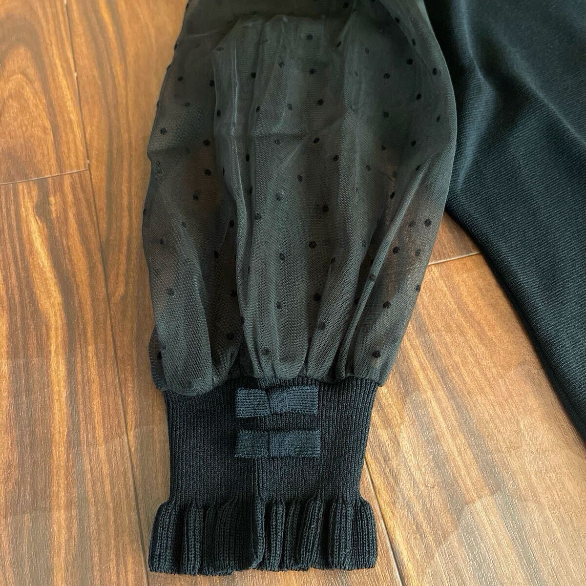 身頃、袖口ニット、ドット柄チュール袖の素敵なトップスです。