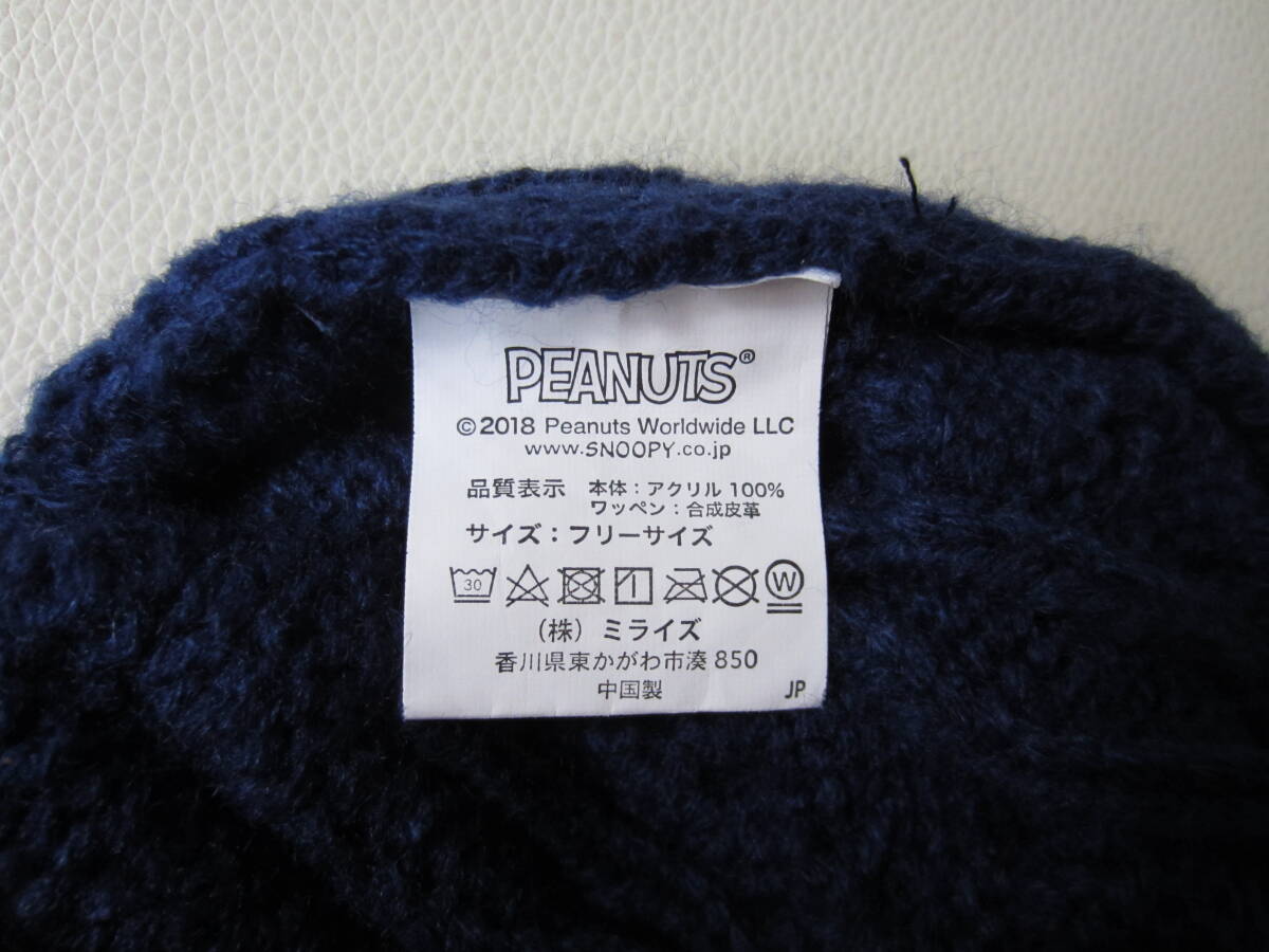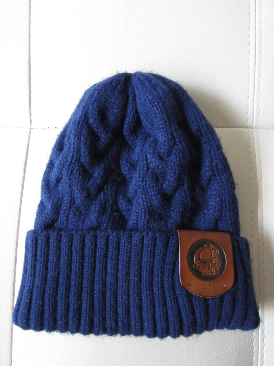 ★【送料込み】「PEANUTS ピーナツ」SNOOPY スヌーピー フライングエース ワッペンつき ニットキャップ(ネイビー・フリーサイズ)★