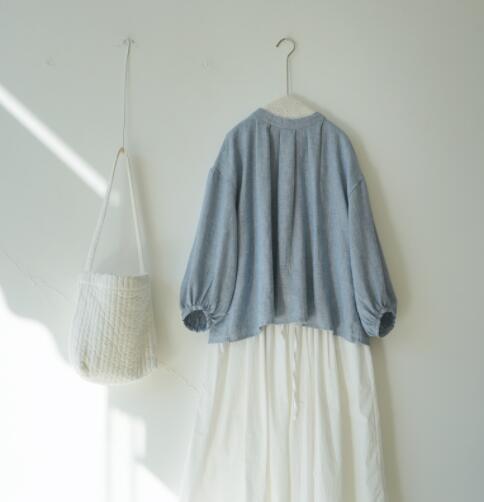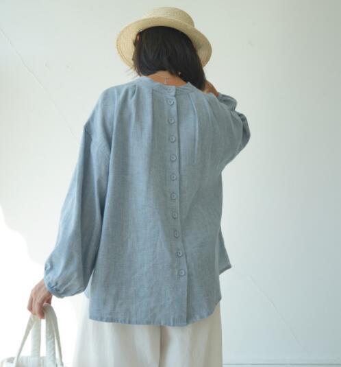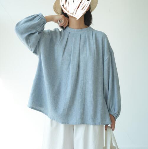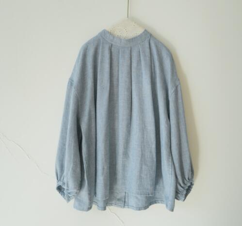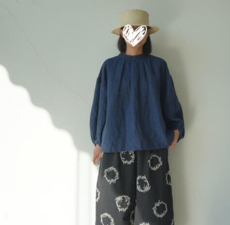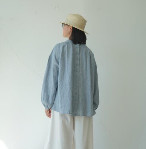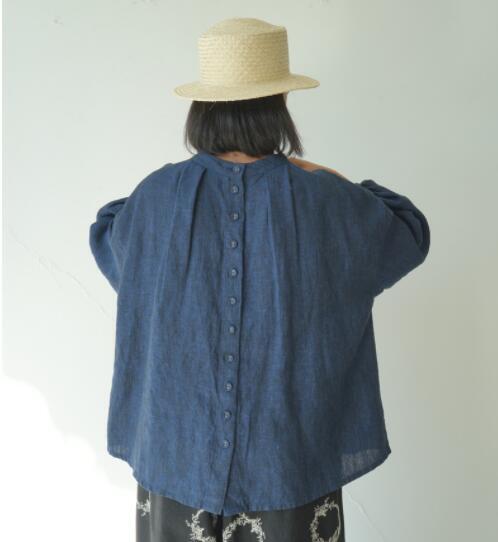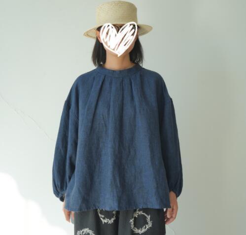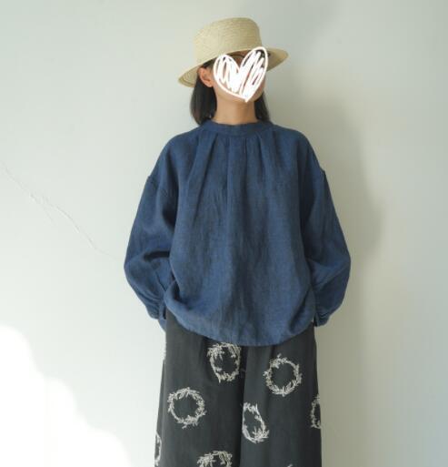 人気品推薦フリーサイズ ワイシャツ トップス チュニック ゆったり 麻100%リネン RINEN ナチュラル 肌触りいい 高質 ブルー