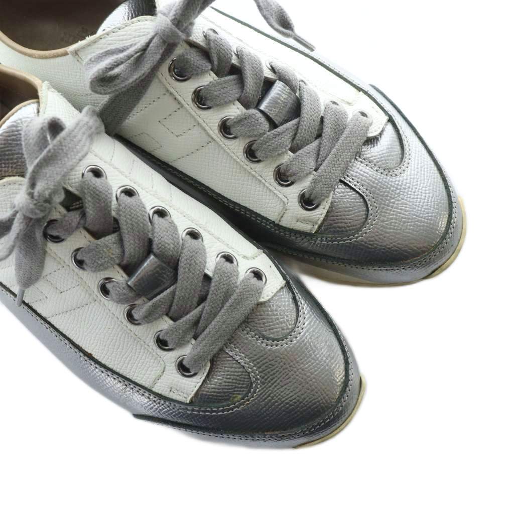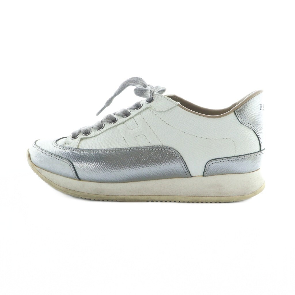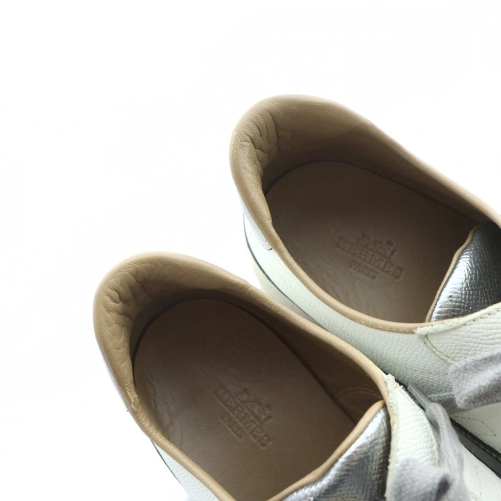 エルメス HERMES クイック Quick ローカットスニーカー シューズ 靴 ロゴ レザー 37 24cm シルバー色 181127Z ■GY18 /MQ
