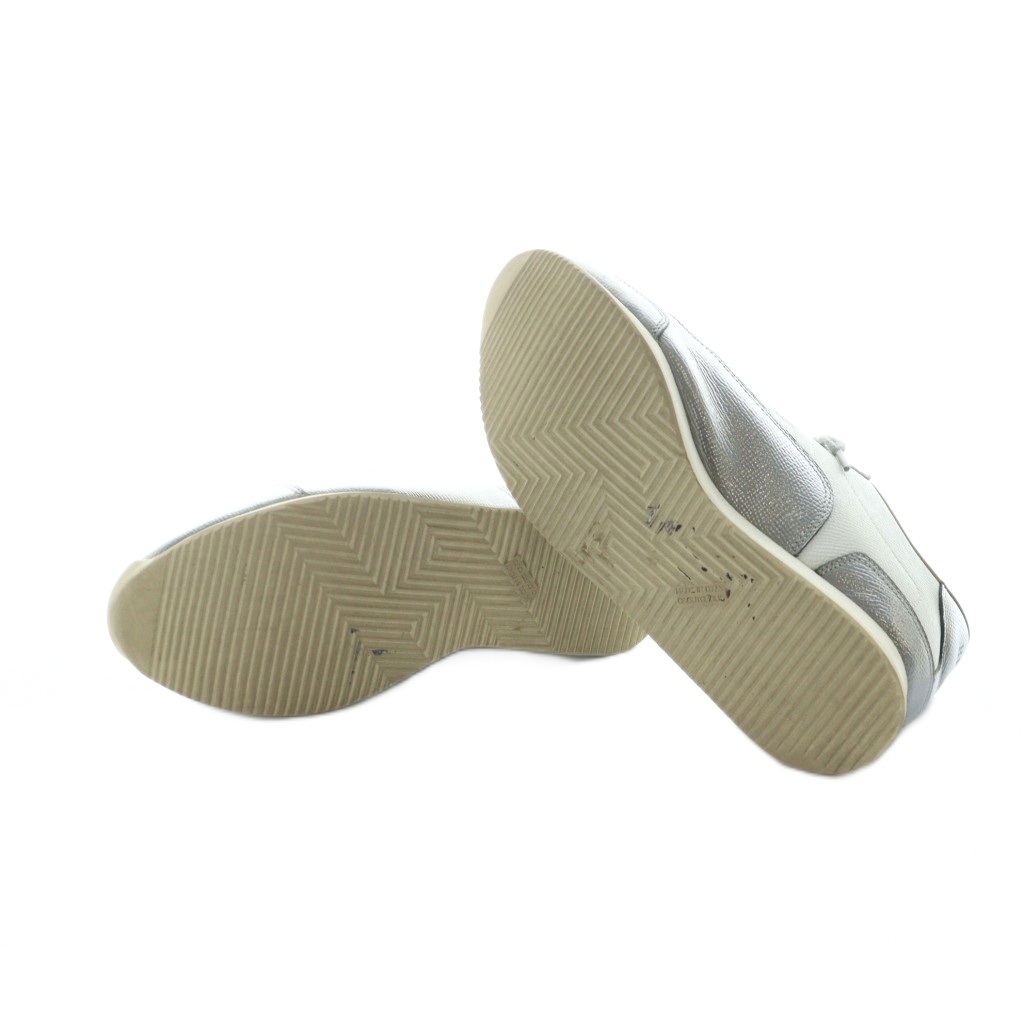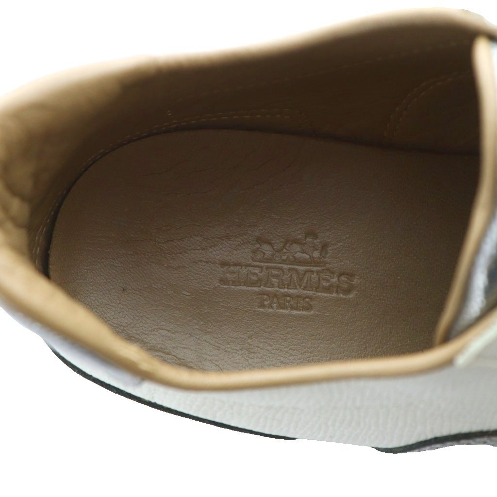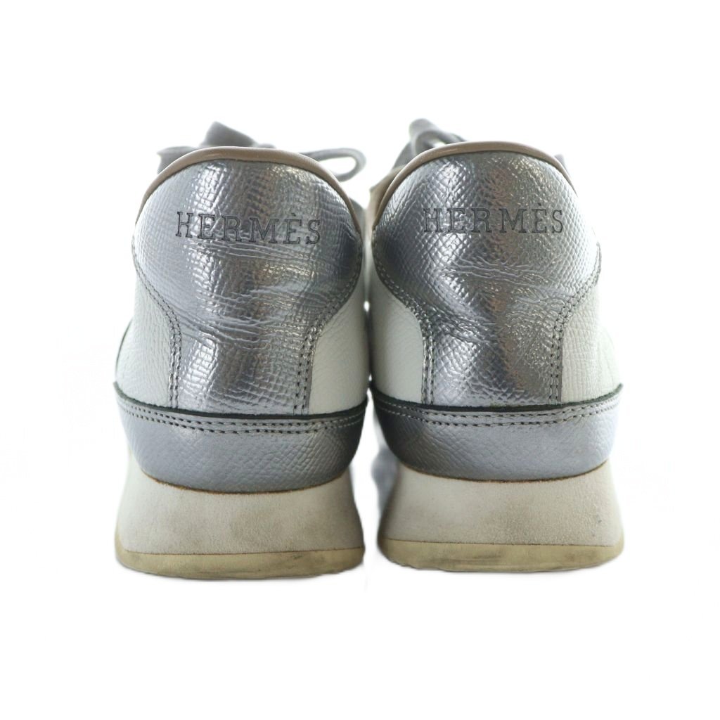 エルメス HERMES クイック Quick ローカットスニーカー シューズ 靴 ロゴ レザー 37 24cm シルバー色 181127Z ■GY18 /MQ