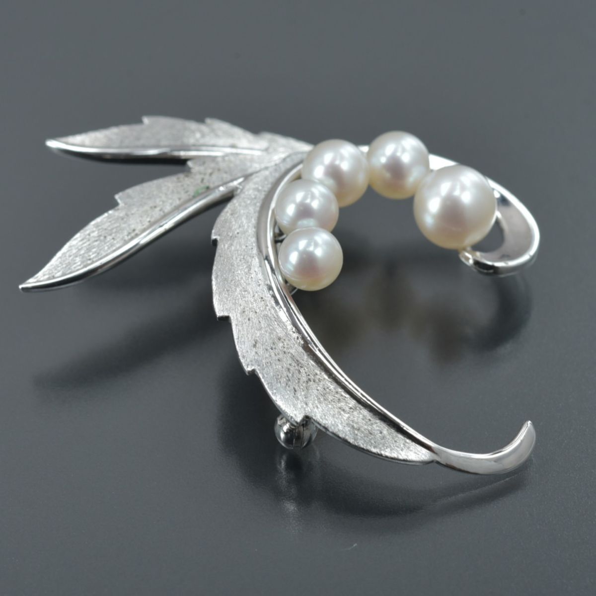 美品 MIKIMOTO アコヤ真珠 ブローチ リーフ パール幅6.1mm 重さ5.2g SV パール 本真珠 S刻印 ミキモト ジュエリー アクセサリー #N※C519