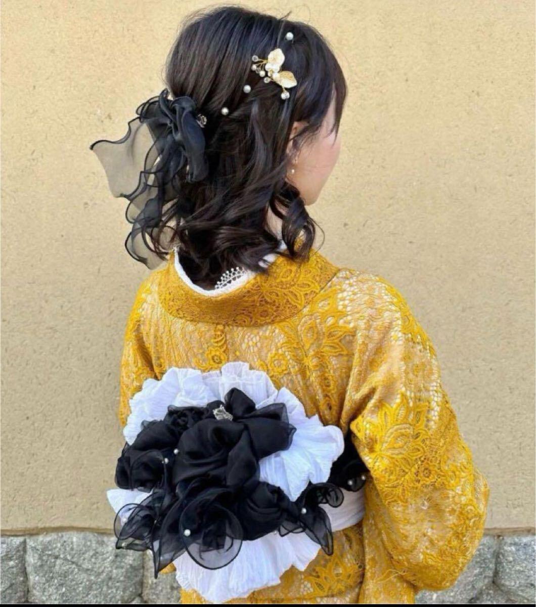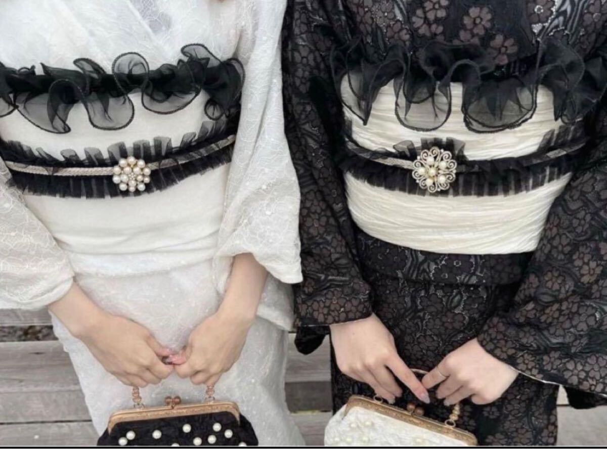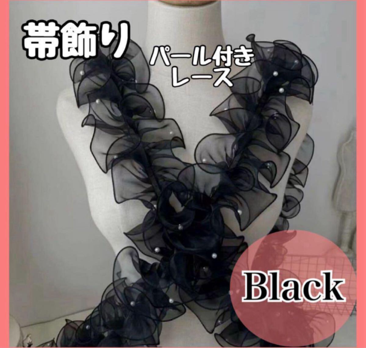 フリル帯揚げ パール 帯飾り 浴衣 着物 卒業式 卒業袴 振袖 成人式 卒業式 袴 地雷 姫 フレンチガーリー レース オーガンジー フリル 黒 帯揚げフリル リボン ハロウィン 装飾 コスプレ 仮装 シアー オーガンジー