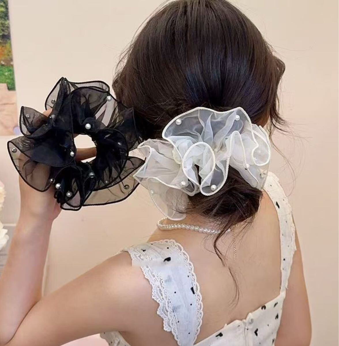 レースとパールなので一品付け加えるだけで華やかさがでます♪