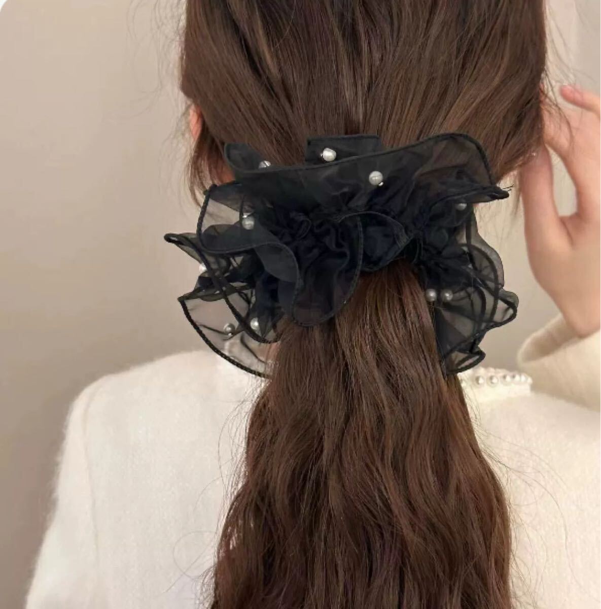 パール付きの黒いレースで、浴衣や着物、成人式にぴったりなヘアアクセサリーです。