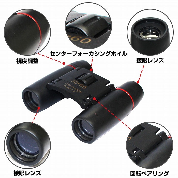 【送料無料】小型双眼鏡 30倍~60倍 軽量 コンパクトサイズ ブラック/黒 スポーツ コンサート バードウォッチング