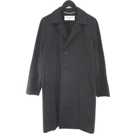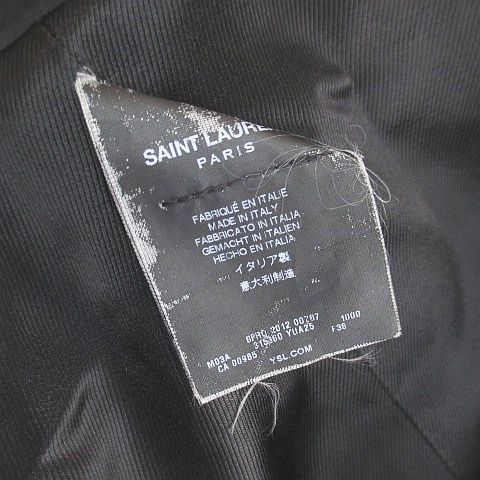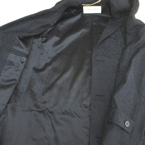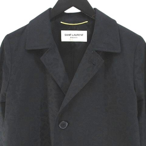 サンローラン パリ SAINT LAURENT PARIS ヒョウ柄 レオパード柄 チェスターコート ロング丈 36 黒系 ブラック イタリア製 ポケット 裏地 レディース