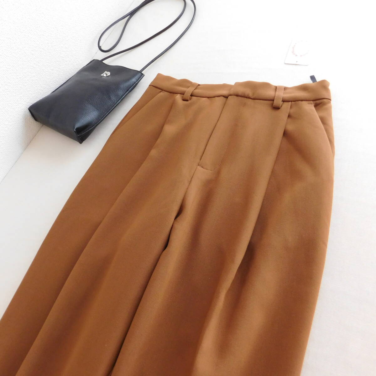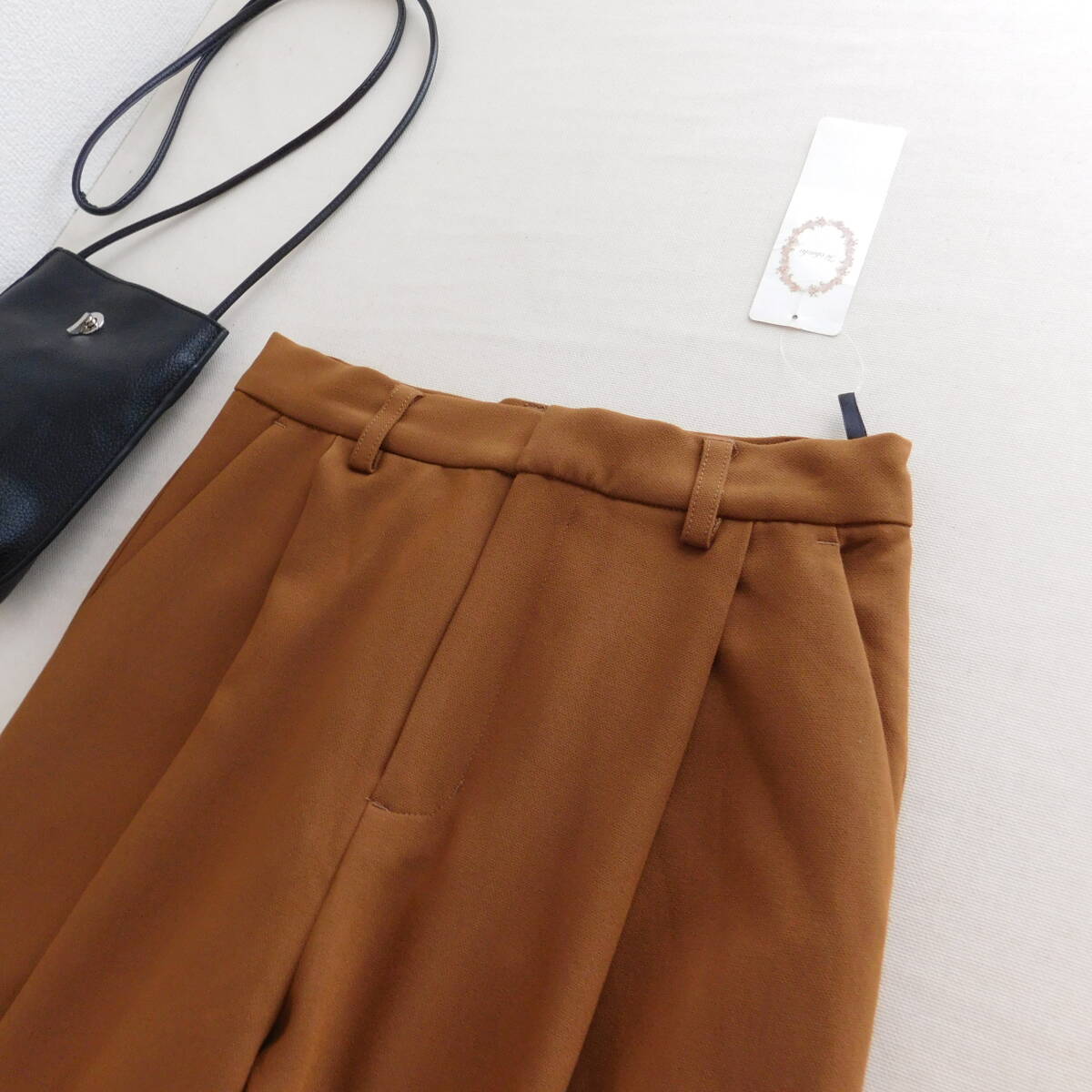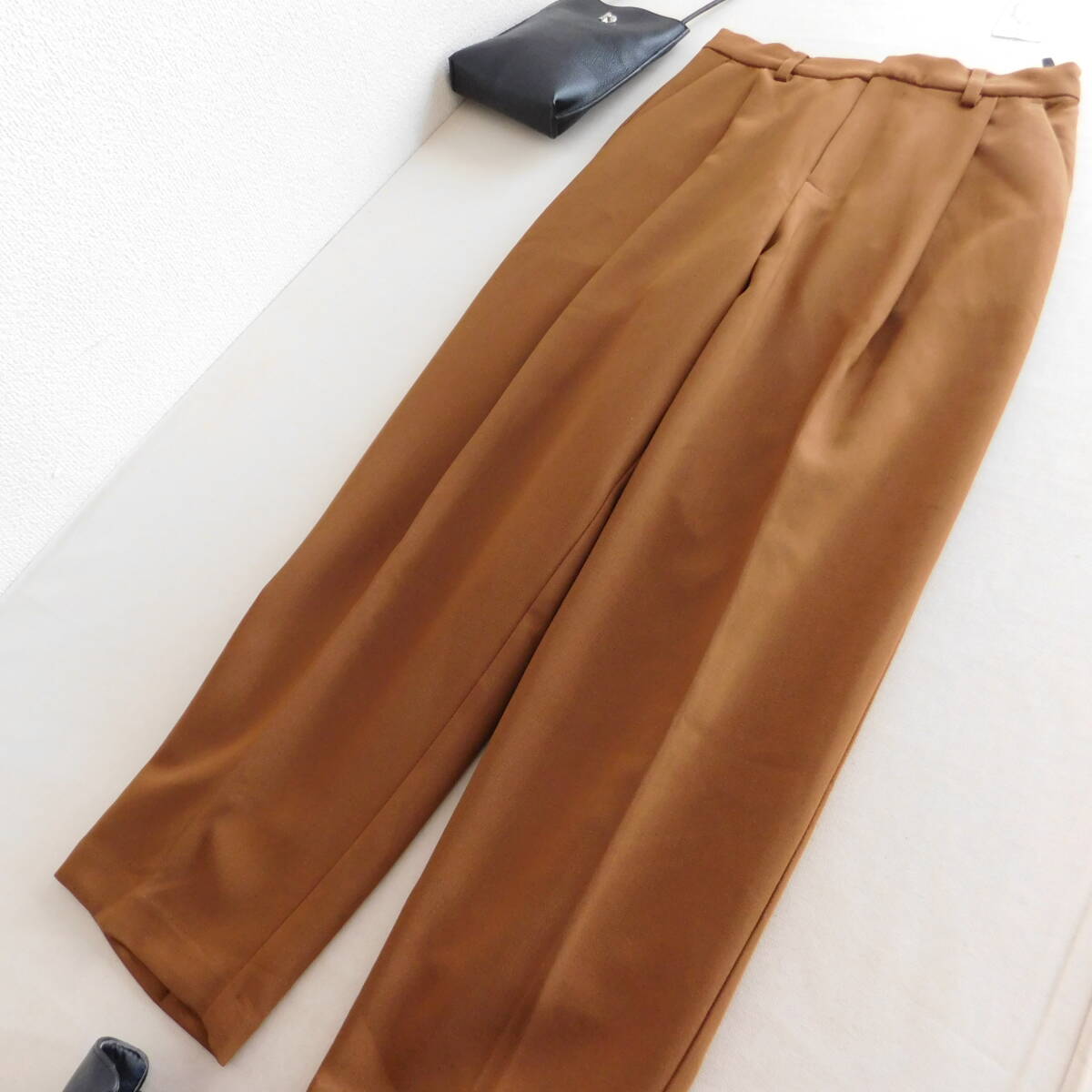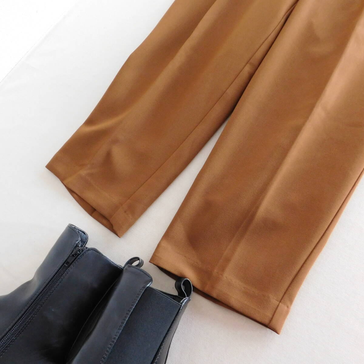 キャメルブラウンカラーのテーパードパンツがかわいいです。