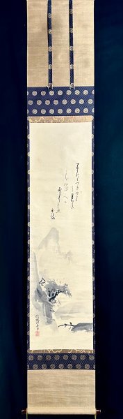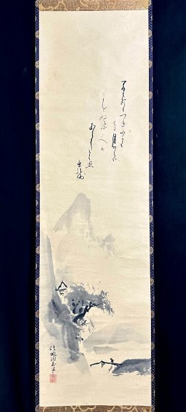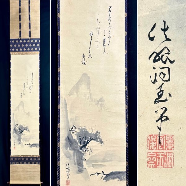 c107H09【模写】景山洞玉 狩野永章 画 香川景樹 賛 山水図 画賛 掛軸 紙本 書 京狩野の絵師 江戸後期の歌人 香川景柄 小沢蘆庵に師事 合箱