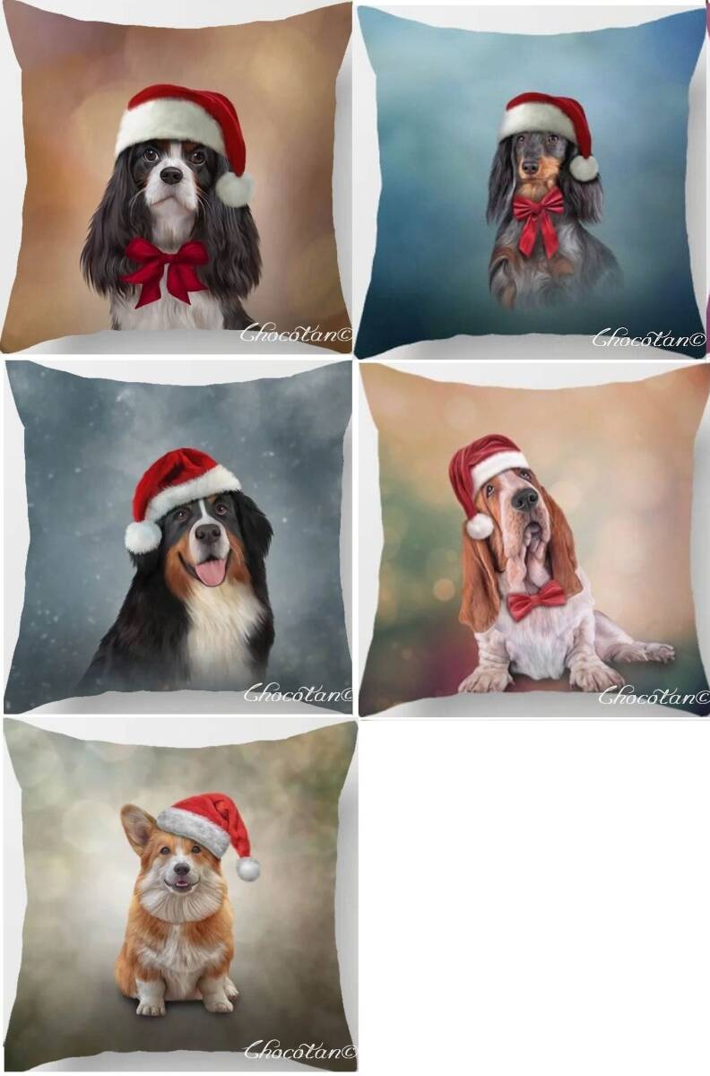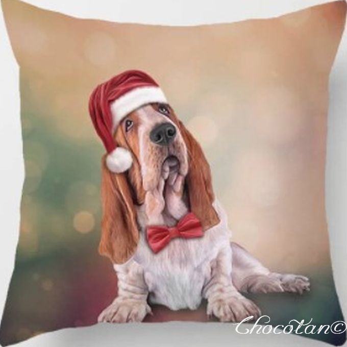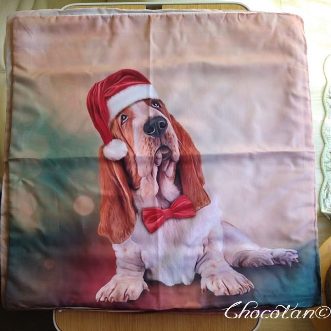 【送料無料】バセットハウンド クリスマス ポリエステル クッションカバー【新品】