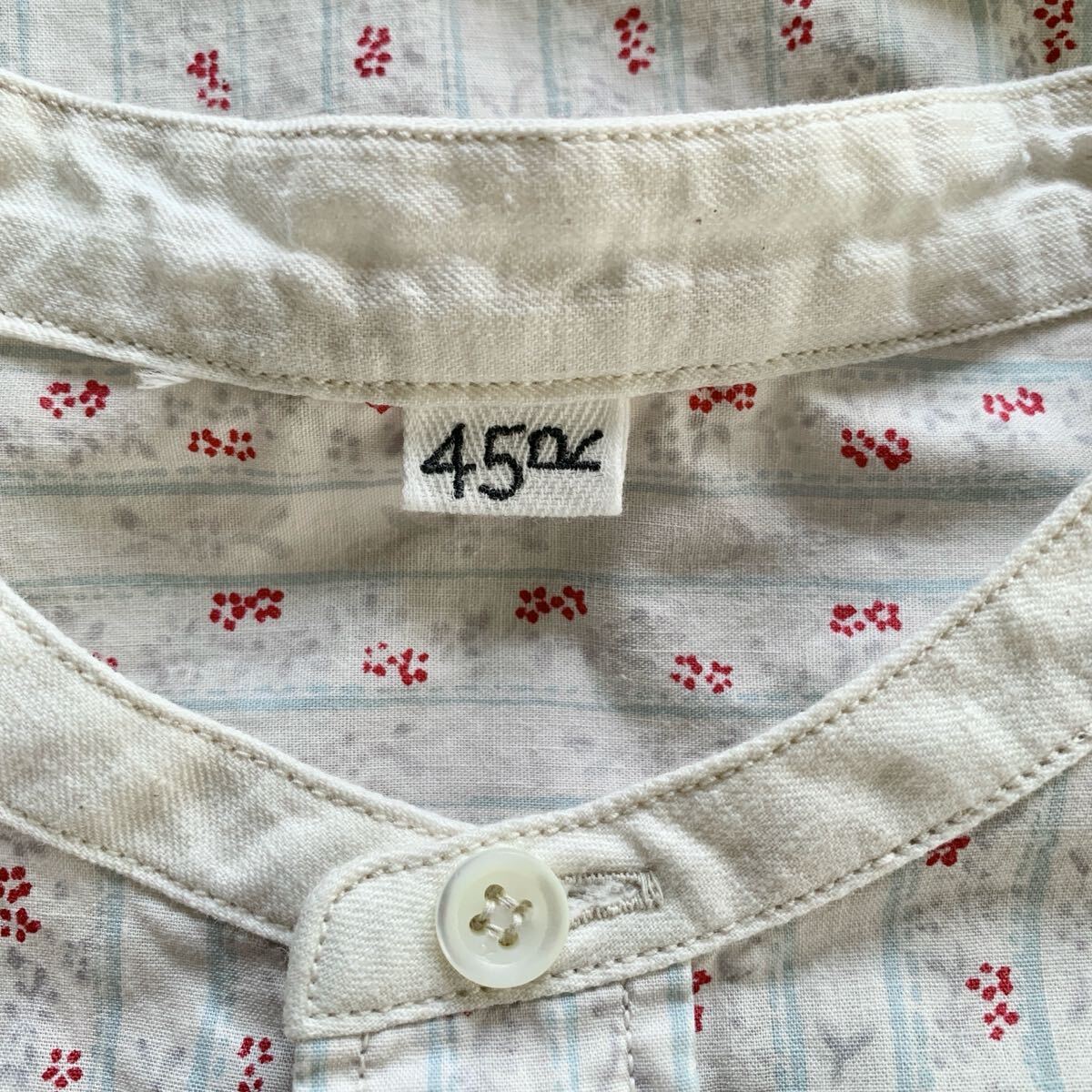 45R タペット小花の908スタンドオーシャンシャツです。定番のタペット素材を使用した、ヴィンテージのワークシャツからディテールを取り入れたとても可愛いシャツです。