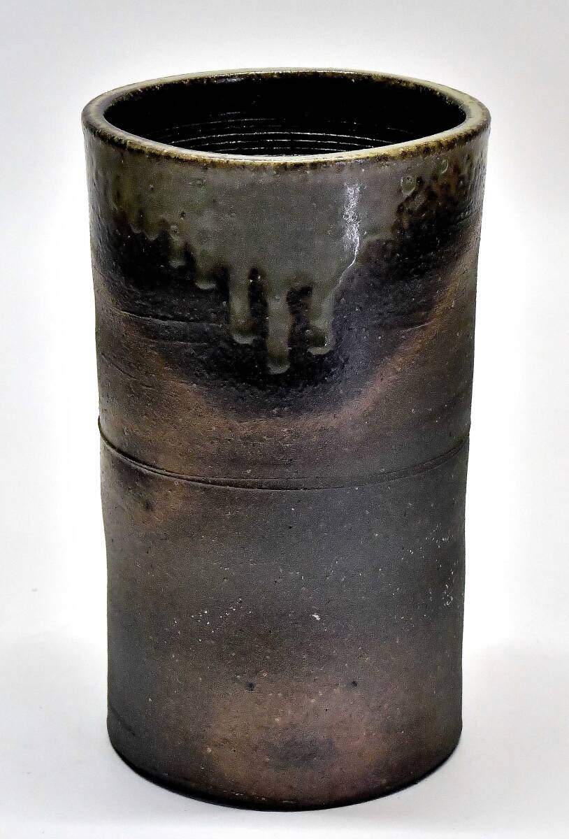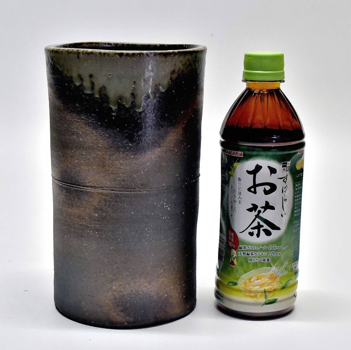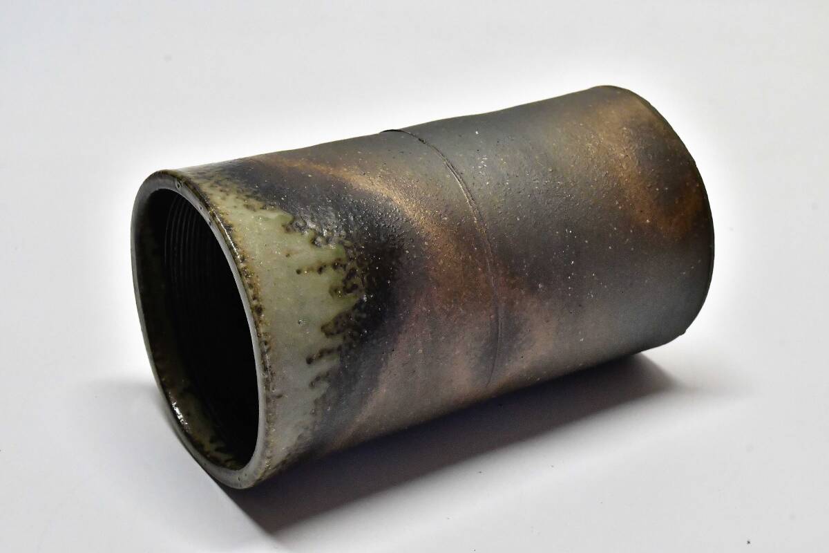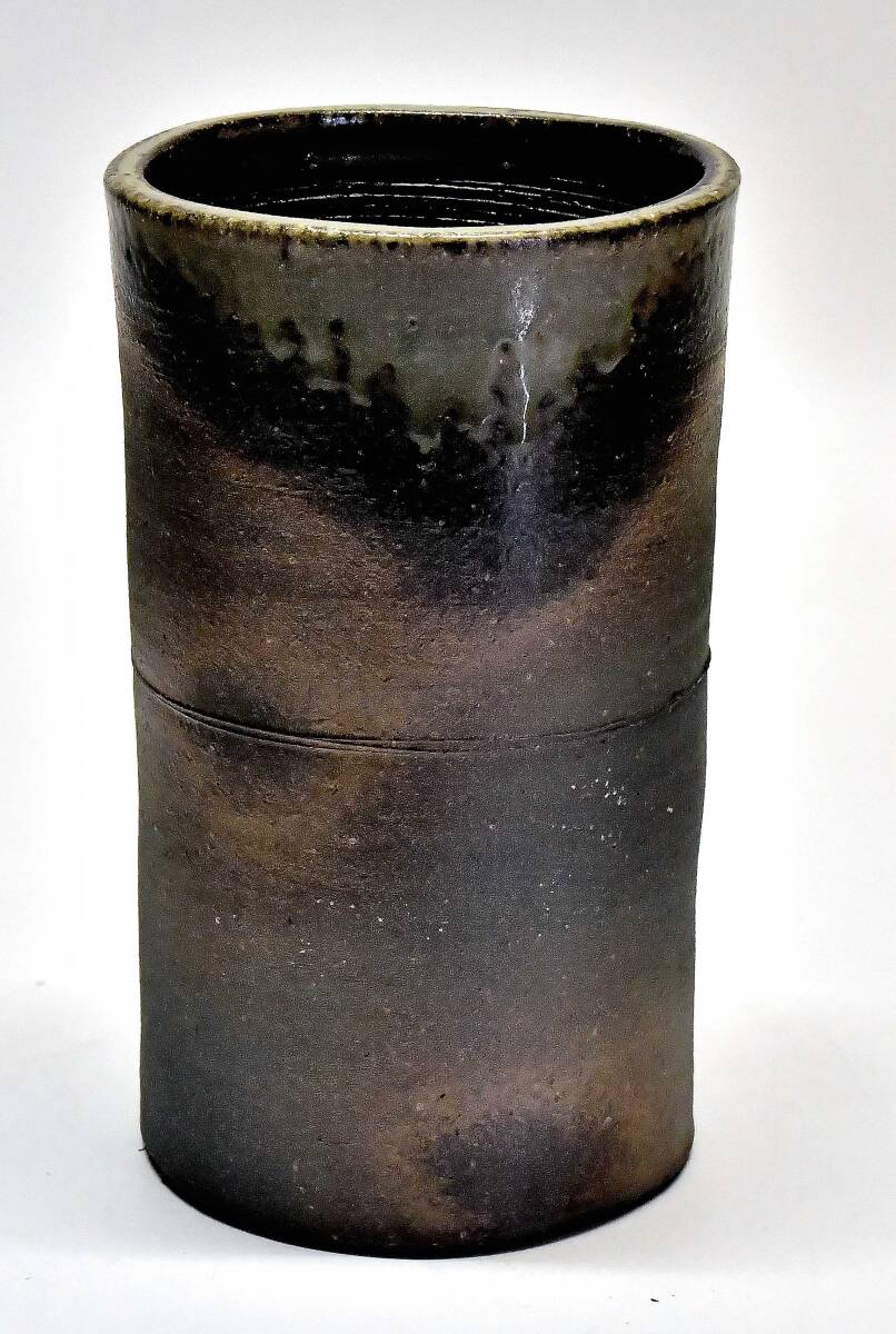萬古 備前写し 丸 寸胴花器 展未使用品