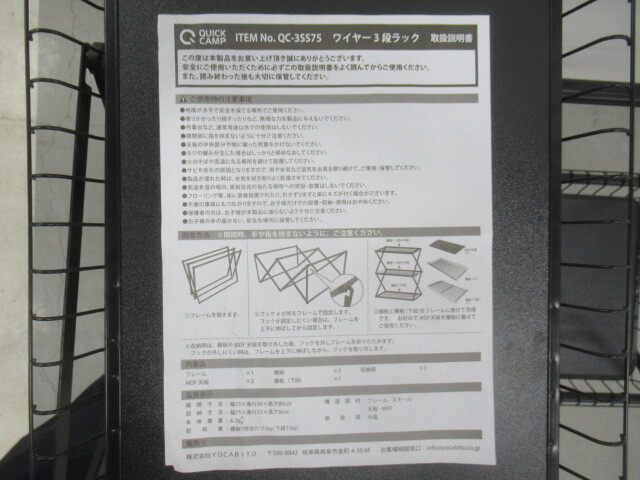 QUICKCAMP 折りたたみ式 ワイヤー3段ラック キャンプ キャンプその他 039357001