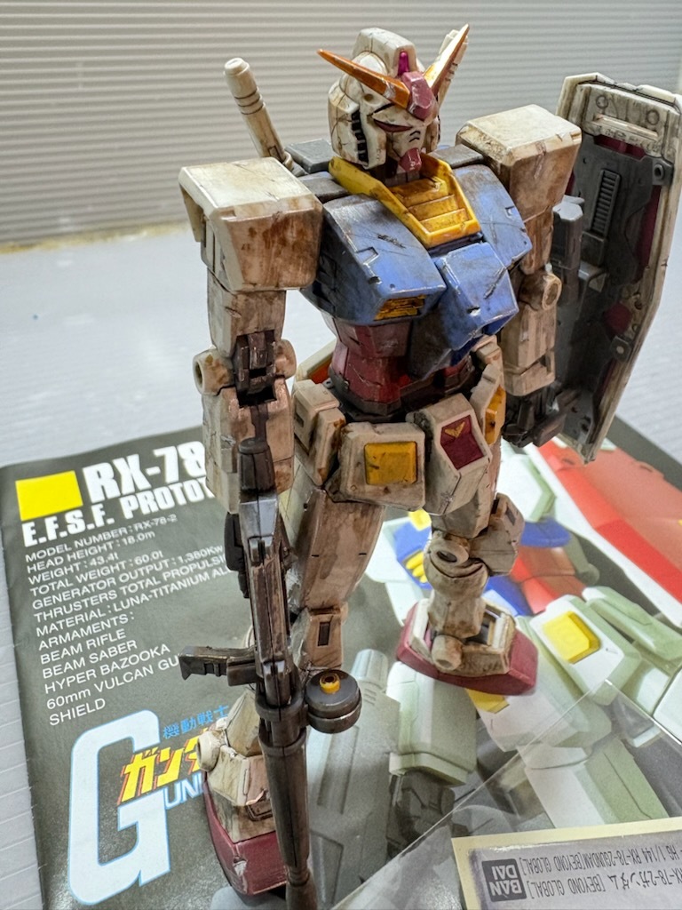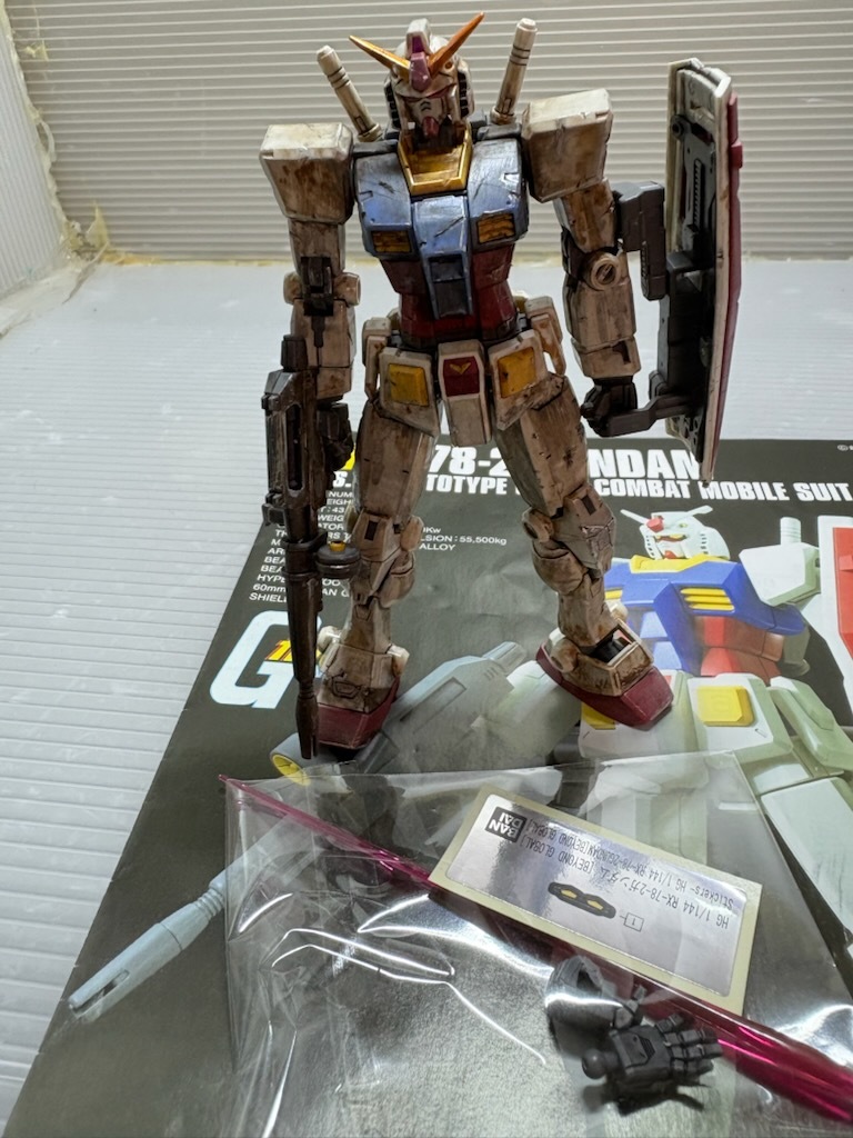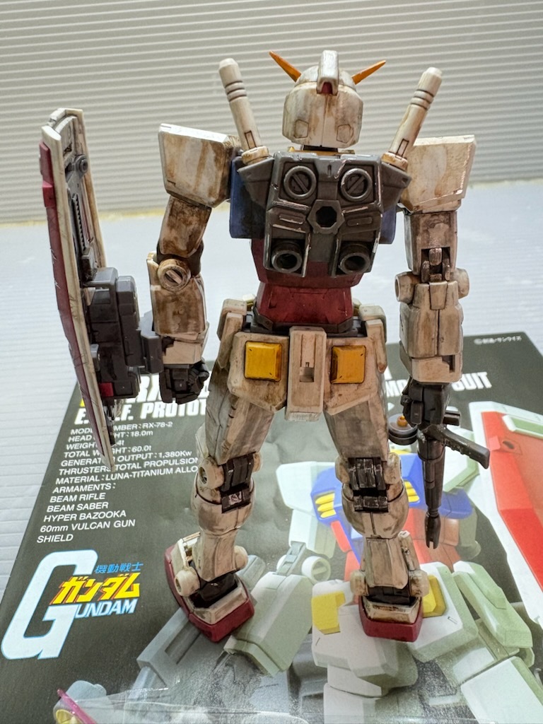 ガンプラ HG 機動戦士ガンダム 1/144 RX-78-2 ガンダム BEYOND GLOBAL 汚し塗装 ウェザリング 全塗装完成品 【商品説明】 ガンプラ HG 機動戦士ガンダム 1/144 RX-78-2 ガンダム BEYOND GLOBALの完成品です。 全体にウェザリングが施された全塗装完成品になります。 自分の製作物ではないため塗装や加工の詳細については不明です。画像でご判断ください。 【商品状態】 《状態・難あり》・・・・・画像に映っているものが内容物すべてとなります。簡易検品のみ行っております。外装上簡易検品では破損などは特に見受けられませんが自分の製作物でないため欠品の有無は不明です。画像をよくご確認の上ご購入ください。メンテナンス、クリーニング済みですのでひどい埃の付着等はございませんが取り切れなかった汚れや埃など多少ある可能性もございますので予めご了承ください。詳細不明品につきLEDの点灯確認も未確認です。配線が通っているかどうかも不明ですので予めご了承の上ご購入ください。 ※評価に関しましては、多忙のためこちらから基本的には致しません。評価のお求めの場合は商品到着後ご連絡ください。 ※出品システム上、匿名発送のラベルがついておりますが発送方法は基本的に佐川急便となります。例外として送料都合上、九州地方・四国地方、離島、沖縄の方はおてがる版ゆうパックによる匿名発送となります。それ以外の方は佐川急便発送ですのでおてがる版ゆうパックは選択しないでください。 ※システム上yahooフリマの方も閲覧できるようになっておりますが、上記記載どおり基本的に佐川急便となりますので匿名発送希望の方はご購入ご遠慮ください。購入された場合は匿名発送以外での発送承諾とみなし指定の発送方法に従っていただきます。 ※値下げ交渉はNGです。 ※取り置き不可です。 | |||