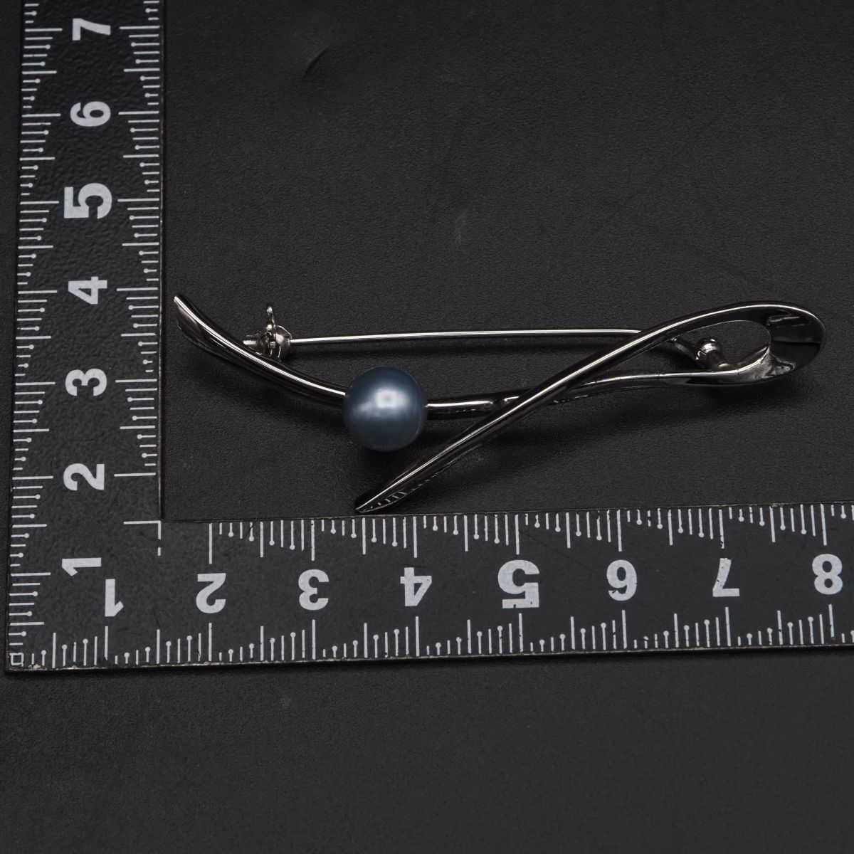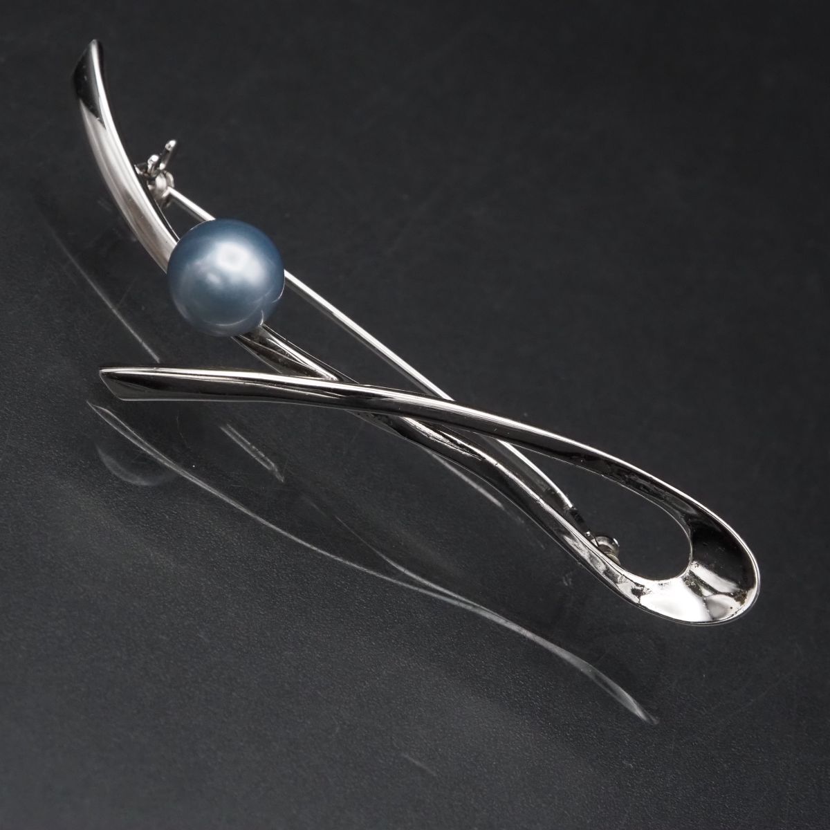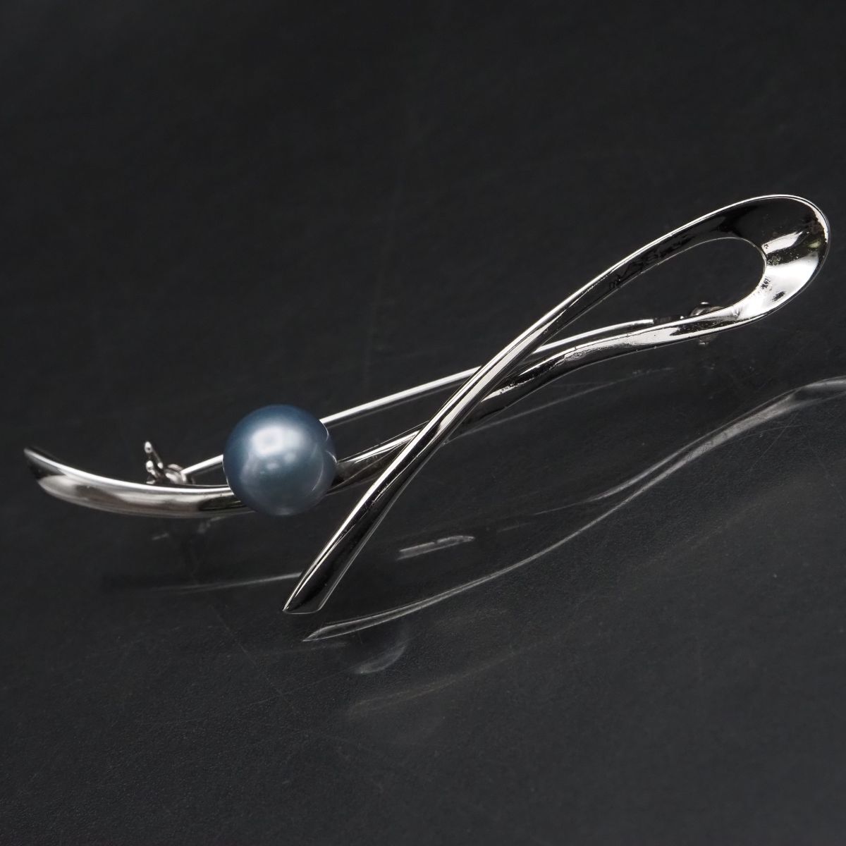 F626 本真珠 8.4mm珠 パール SILVER刻印 ブローチ ブルー系カラー デザイン シルバー コサージュ 6月誕生石
