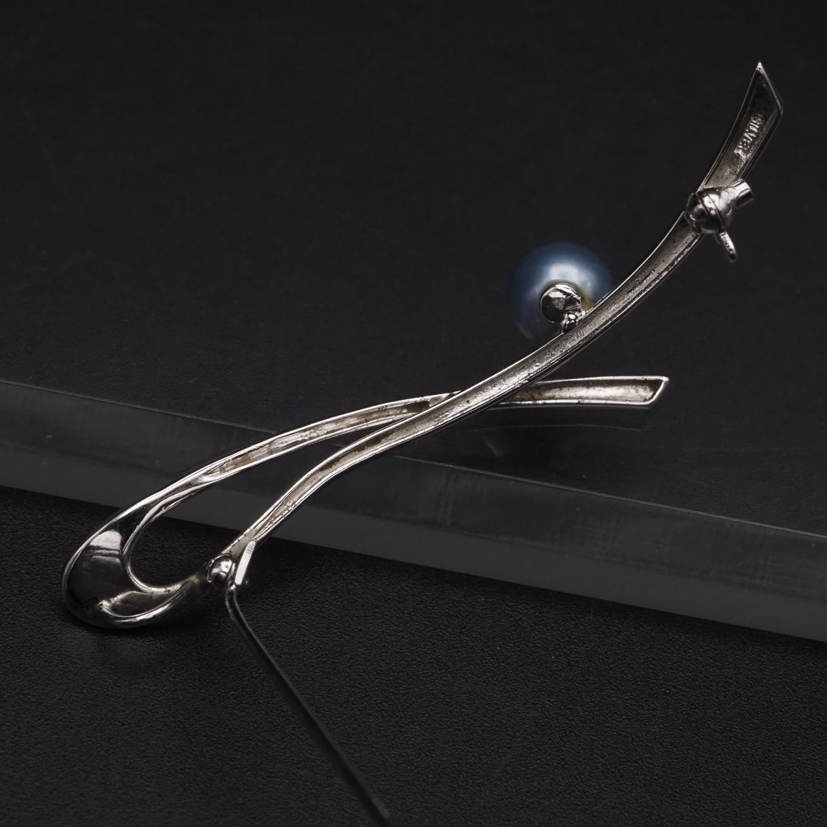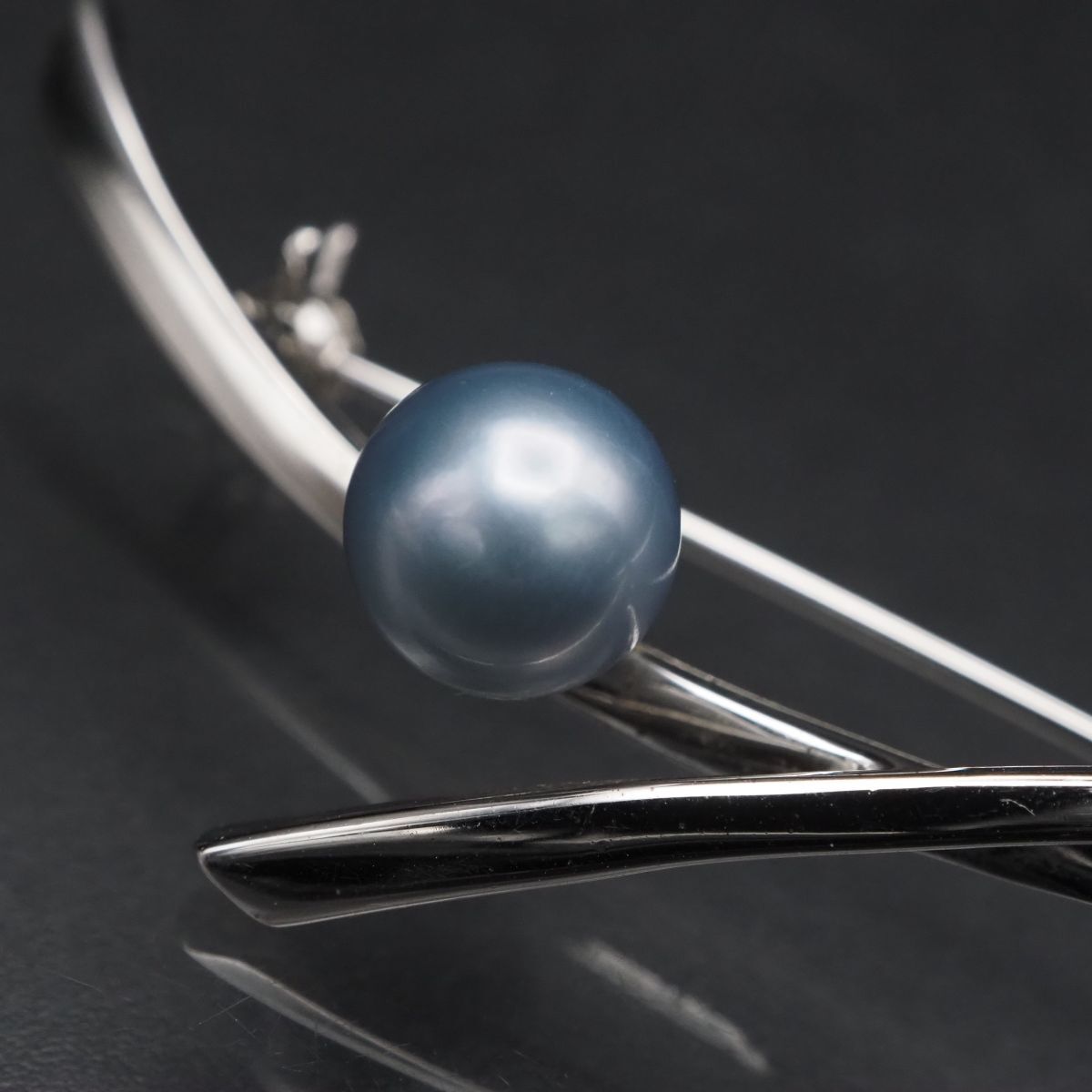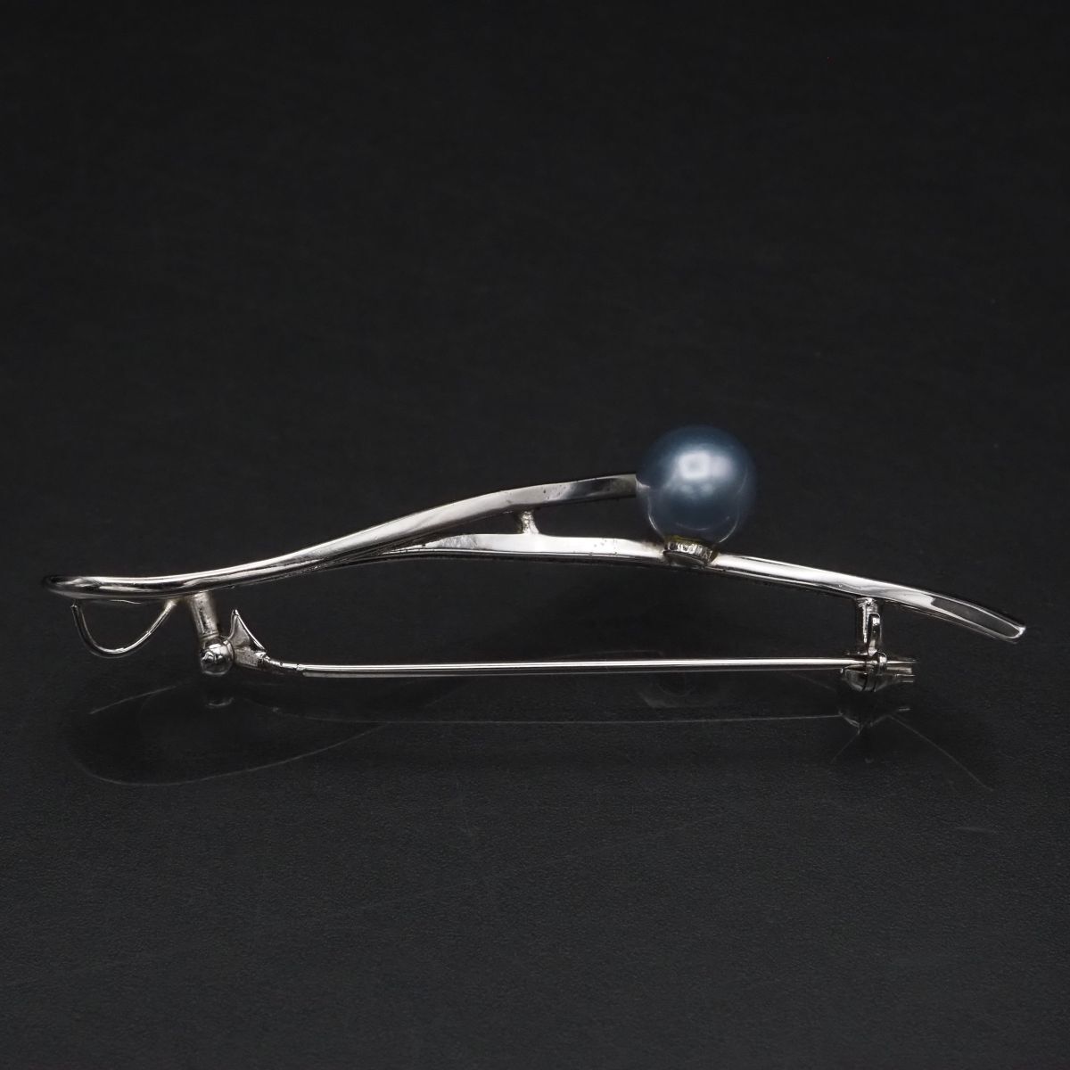F626 本真珠 8.4mm珠 パール SILVER刻印 ブローチ ブルー系カラー デザイン シルバー コサージュ 6月誕生石