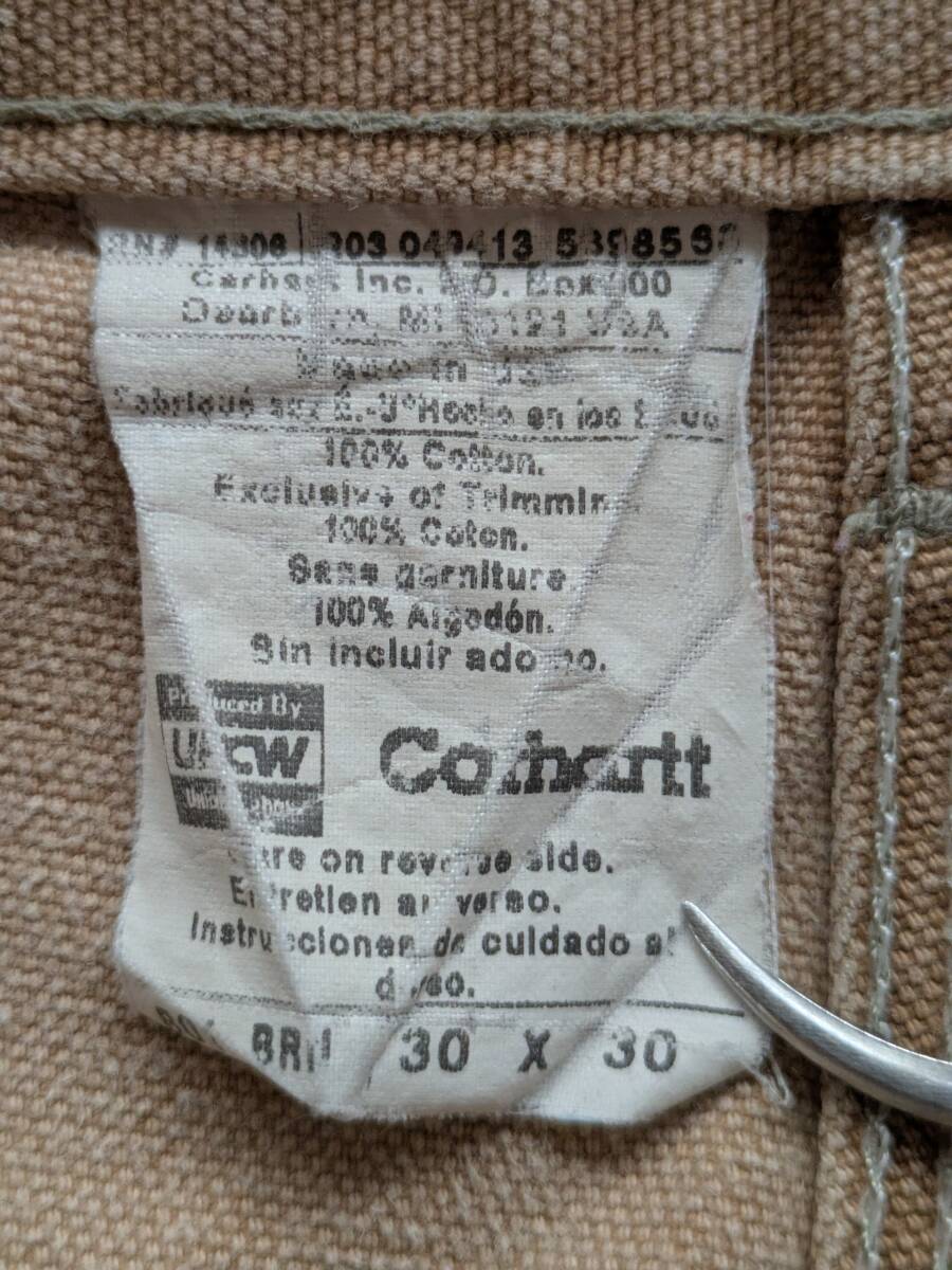古着のカーハート、ブラウンダック地のダブルニーペインターパンツです。
