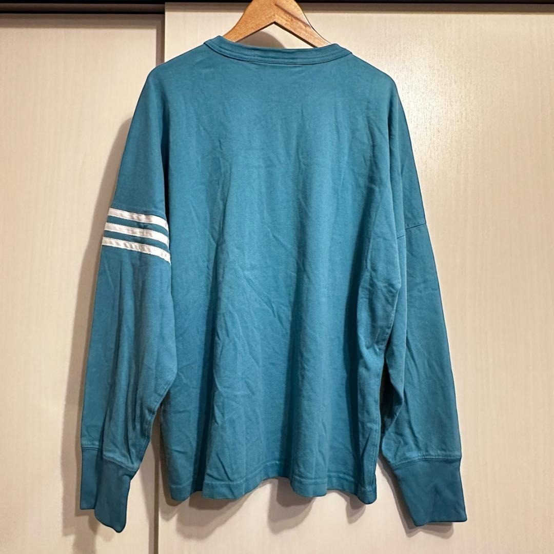 #adidas のグリーン長袖Tシャツ。鮮やかなグリーンカラーが目を惹き、スポーティーながらもストリート感のある着こなしが楽しめるアイテムです。ゆったりとしたシルエットで、デイリー使いやスポーツシーン、リラックスコーデにもおすすめ。シンプルなデザインなので、ジャケットやブルゾンのインナーとしても相性抜群です。ユニセックスで着用でき、カジュアルスタイルを格上げしてくれる万能な一枚です。