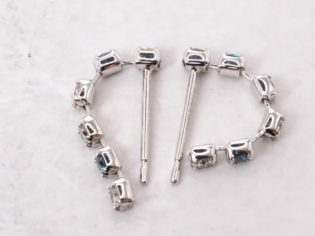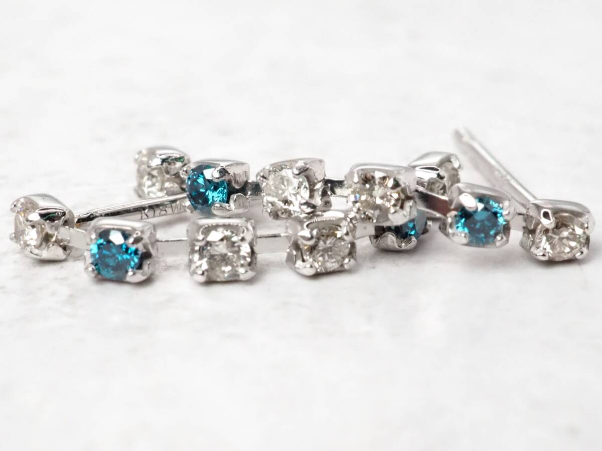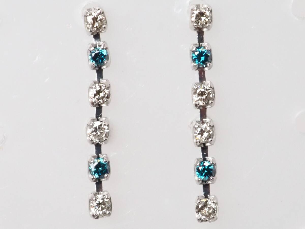 【8176M】K18WG 天然ブルーダイヤモンド 天然クリアダイヤモンド計0.24ct/0.12ct/0.12ct/0.7g ピアス