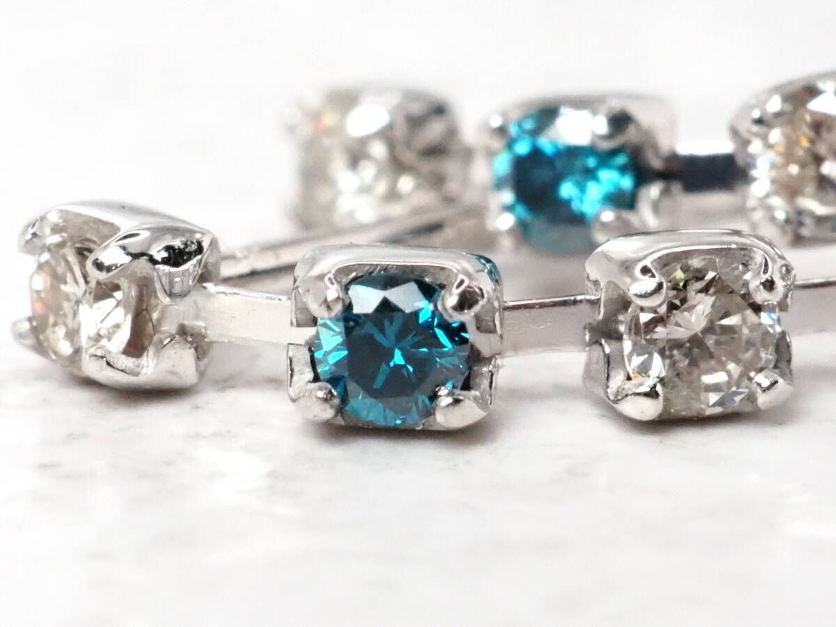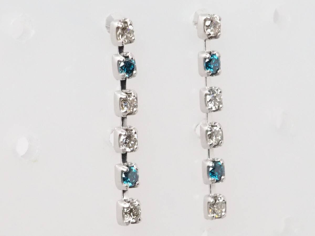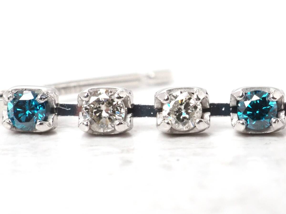 【8176M】K18WG 天然ブルーダイヤモンド 天然クリアダイヤモンド計0.24ct/0.12ct/0.12ct/0.7g ピアス