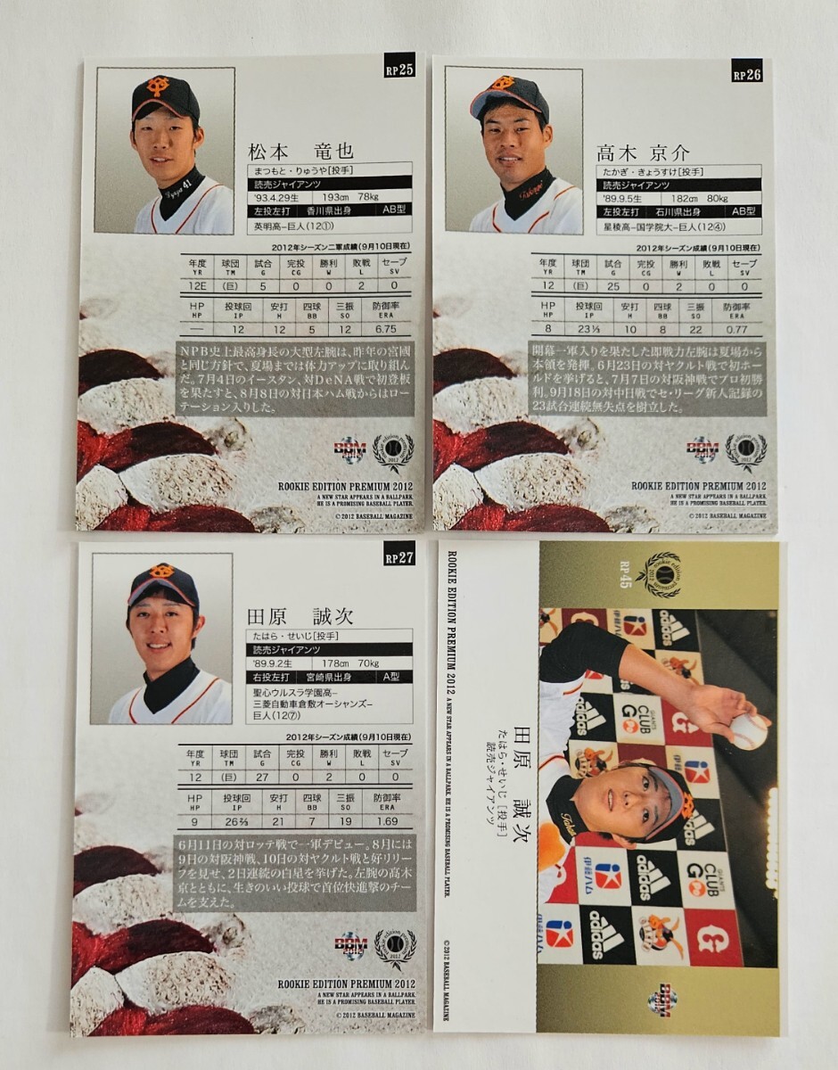 2012年BBM ルーキーエディションプレミアム 巨人レギュラー4枚セット①