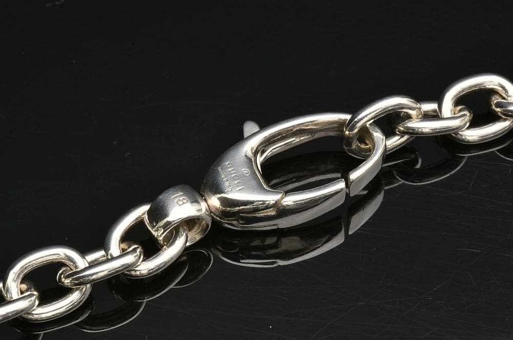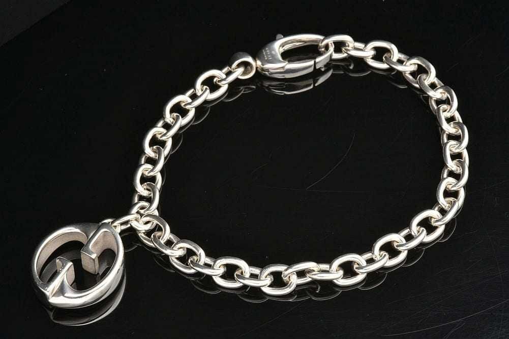 | 商品説明 | GGモチーフが印象的なシルバー製のチェーンブレスレットでございます。モチーフや留めにスレがございますが、目立つダメージはございません。 |