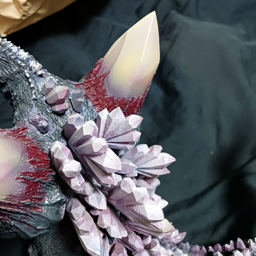足付け根や尻尾など、一部パーツ接合部が外れており、尻尾先端の小さな結晶(7枚目)が一つかけています