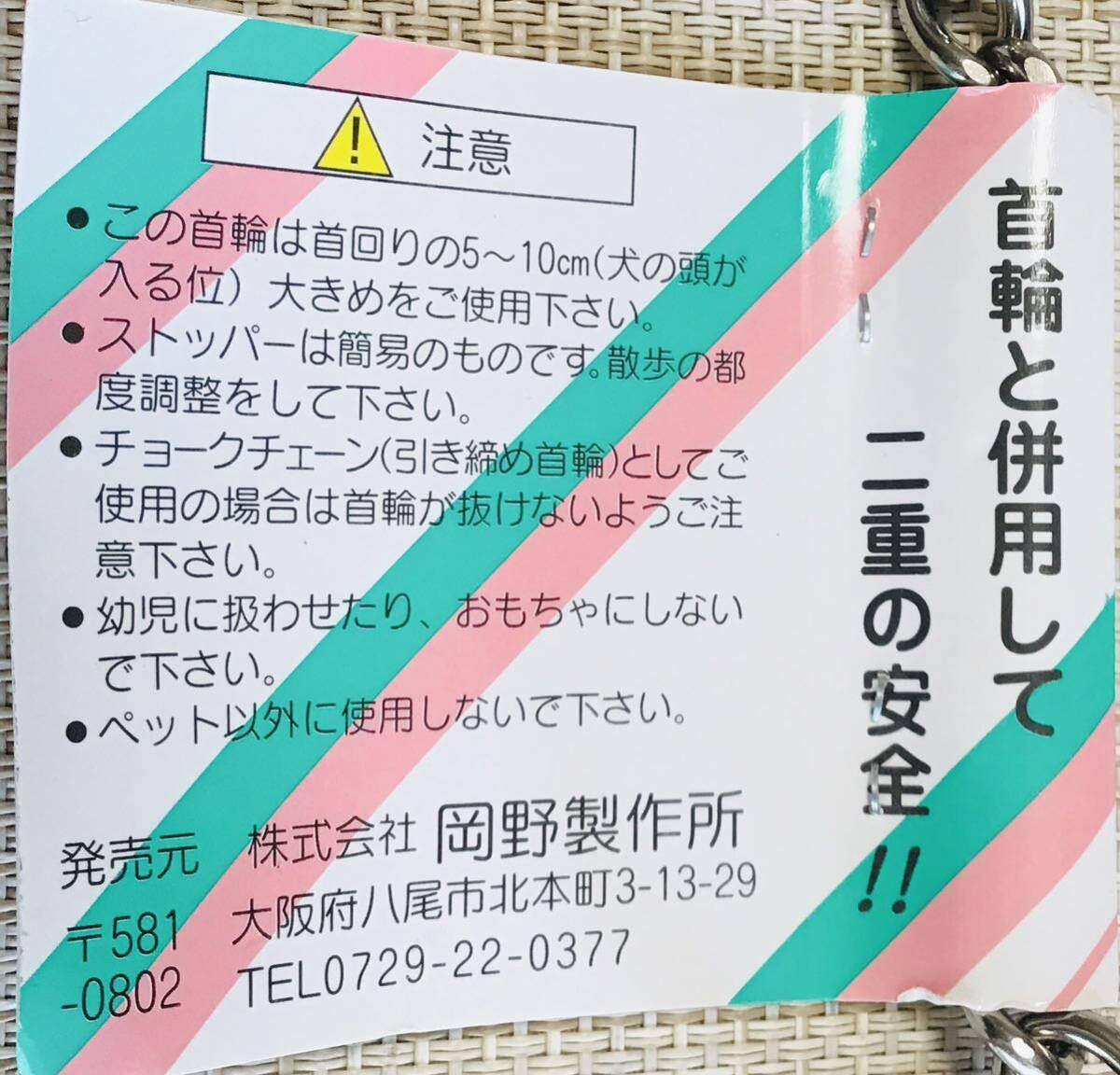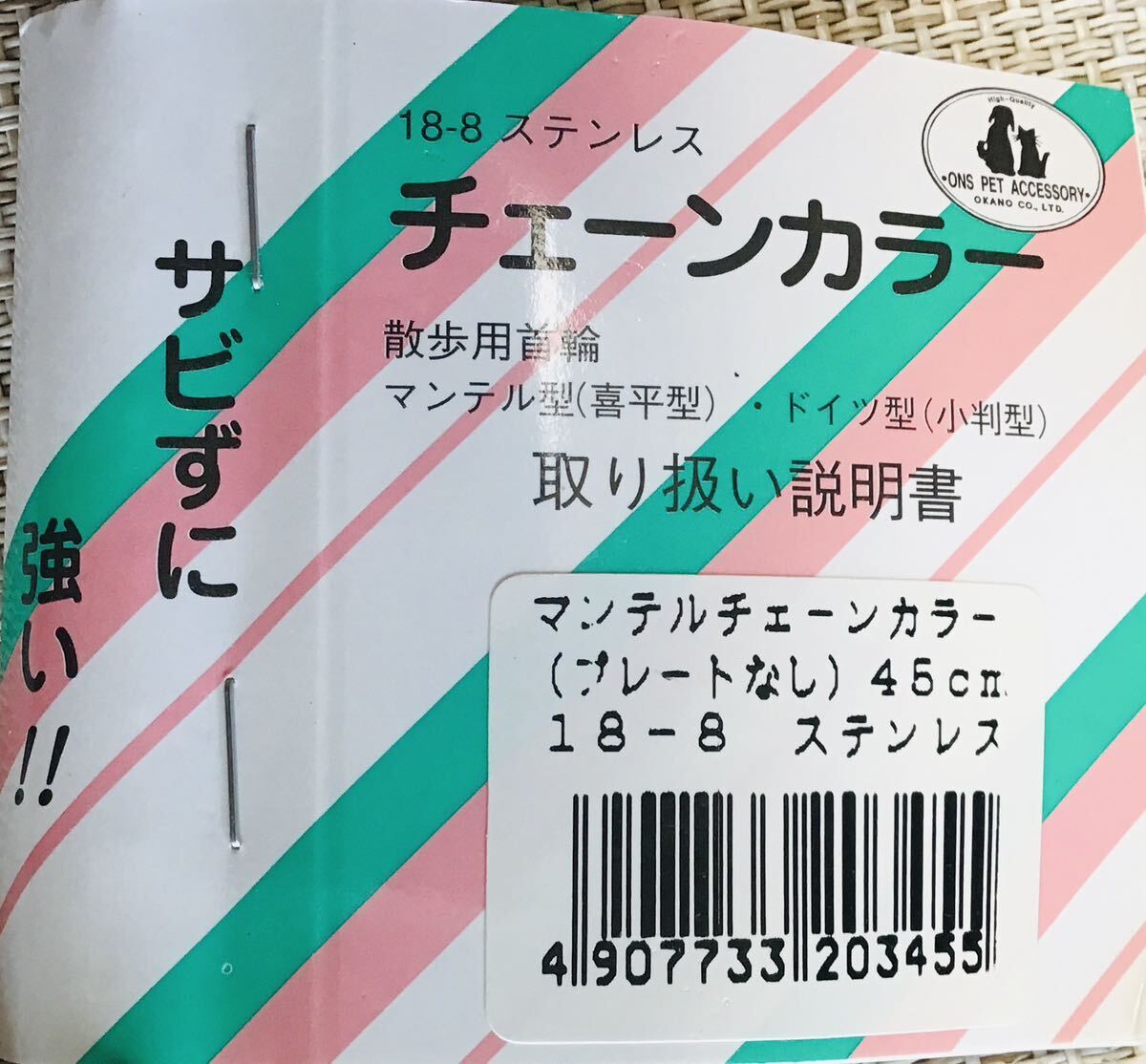 プレートなし マンテル チェーンカラー 首輪 ①3455 サイズ 45cm 18-8 ステンレス 日本製 岡野製作所 4907733203455