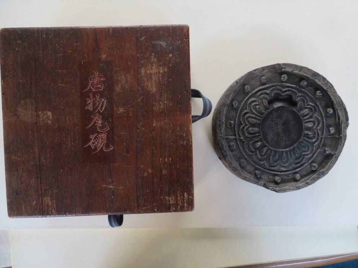商品説明 | *大変重量のある瓦硯です。 *時代は明時代ごろ。時代の古箱入り。 |