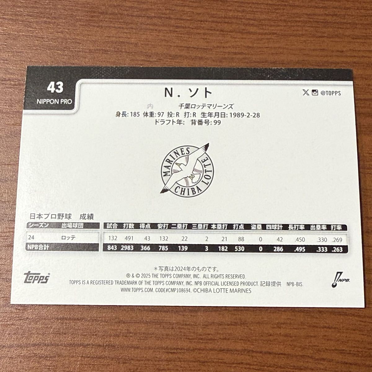 Topps 2025 NPB 千葉ロッテマリーンズ ネフタリ・ソト ベースカード 43