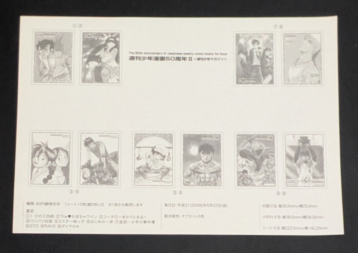 2009年・記念切手-週刊少年漫画50周年Ⅱシート(少年マガジン)解説書付