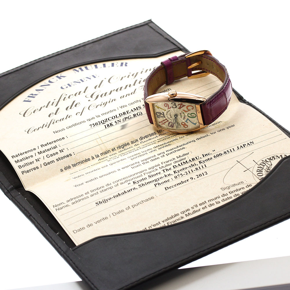 フランクミュラー FRANCK MULLER 7502QZ トノウ カーベックス カラードリームス K18PG クォーツ レディース 保証書付き_885154