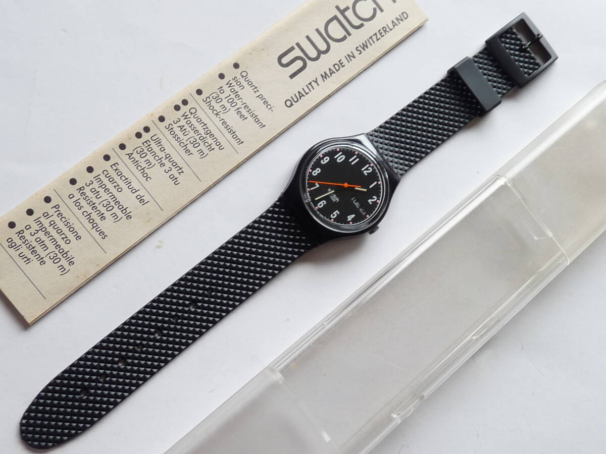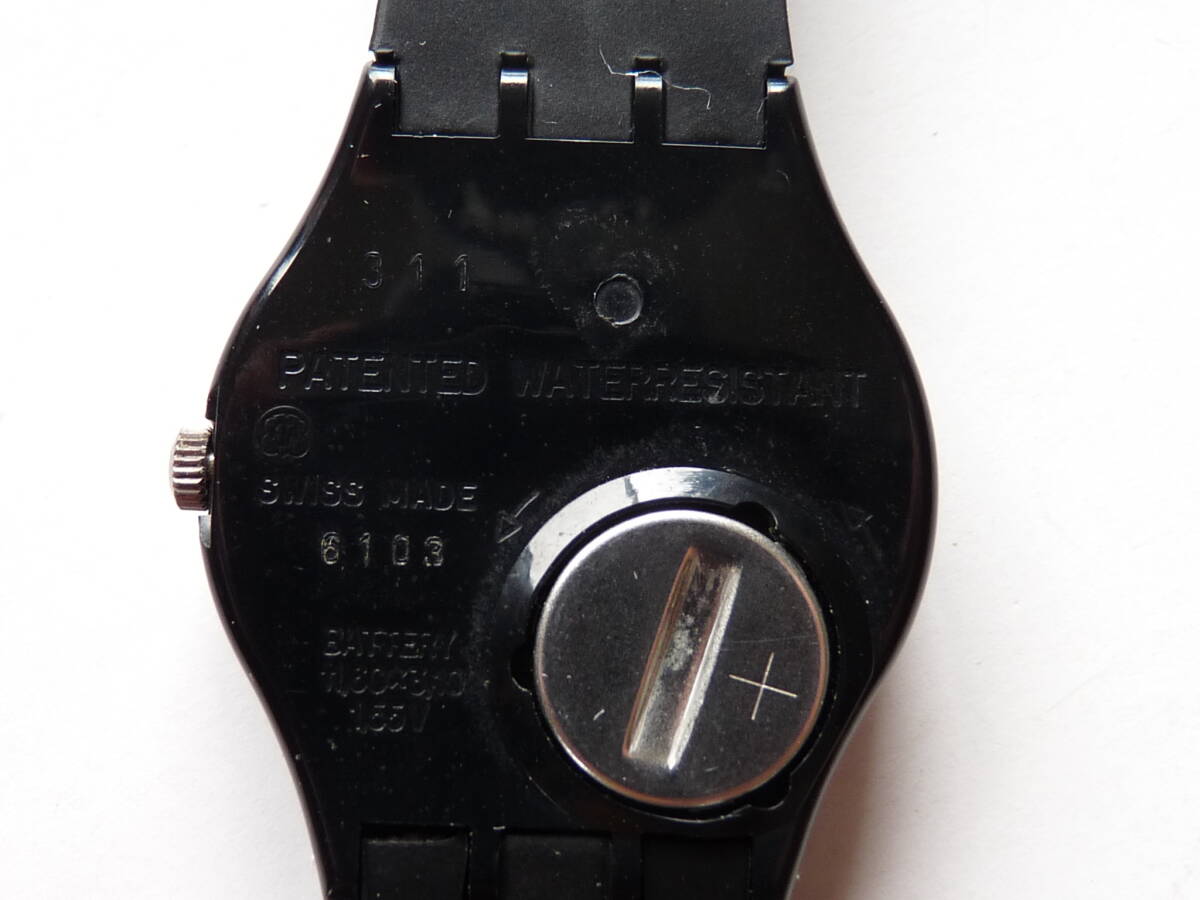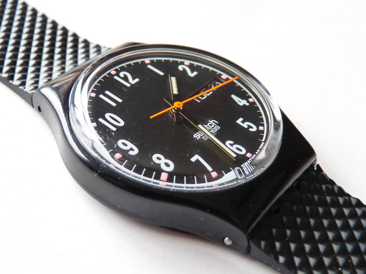 未使用電池交換済 スウォッチ レギュラーモデル Swatch 1993年モデル TEE 品番GB728 3時方向にデイト/曜日表示 ベルト取替済