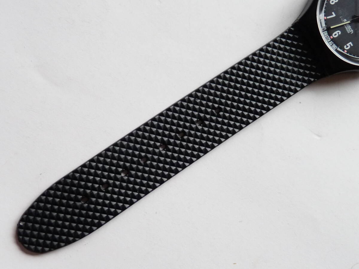 交換したベルトは社外品でありますがSwatch専用ベルトでとてもしなやかに曲がりますので、特に問題無いかと思います。