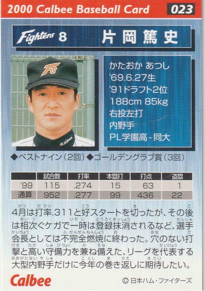 ●2000カルビー【片岡 篤史】 BASEBALL CARD No.023:日本ハム R7