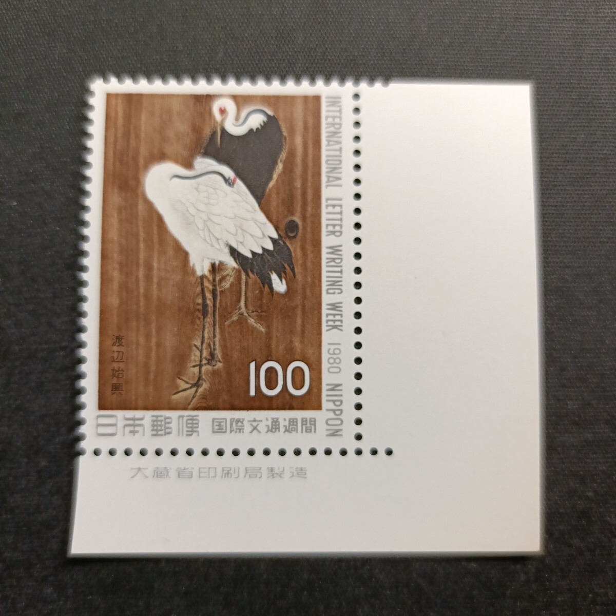 ★国際文通週間。(1980年)。昭和55年。美品。渡辺始興画。「鶴図」。文通週間。記念切手。昭和切手。切手。