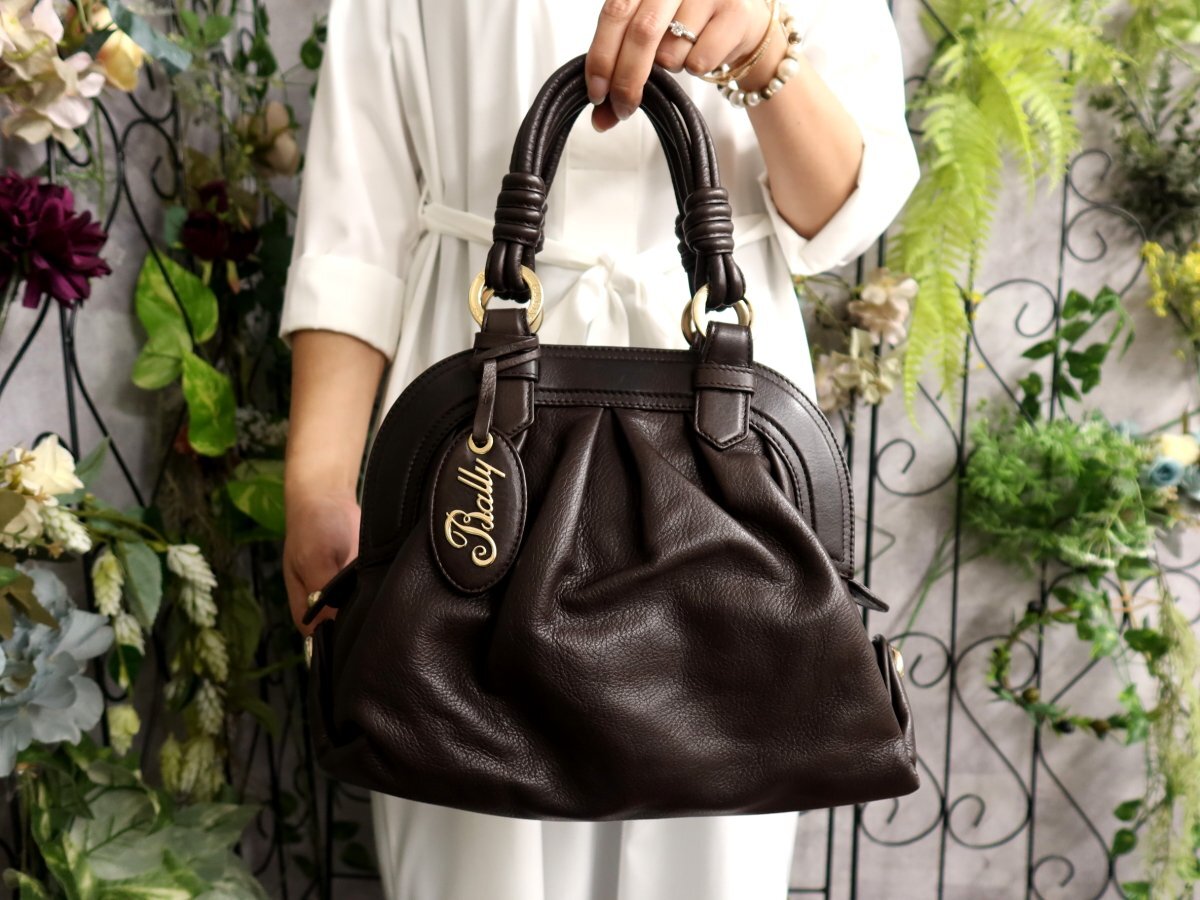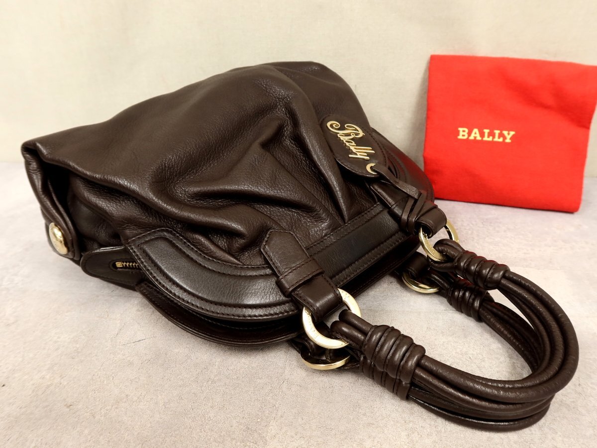●超美品●BALLY バリー●ロゴ金具●カーフ レザー 本革●ハンド バッグ●ダークブラウン●ゴールド金具●腕掛け●かばん●Js60516