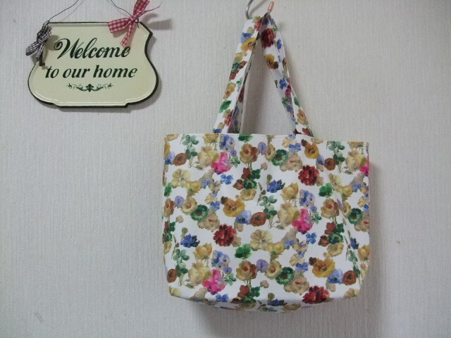お花柄の素敵トートバックです。画像通りの説明になりますが、不足の面がございましたら、ご容赦ください、