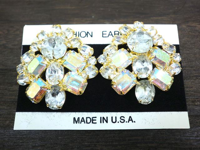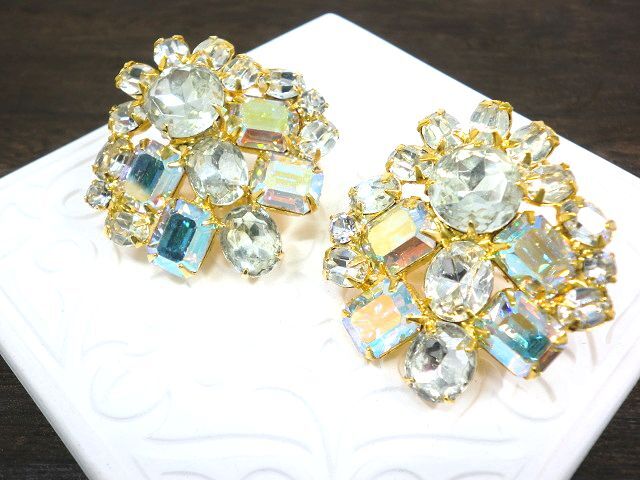 海外や国内で買い集めた私のコレクション。 出番が少なくなってきたものから順次整理中です。 中には、「ヴィンテージ」と言えるほど、古いお品もございますが まだまだ活用して頂けると思います。 お気に召して頂けましたら、ぜひ! 目視チェックの範囲で気になる点は記載しております。 記載のない物については特筆すべきダメージはないと判断しております。 クリアラインストーンや七色に輝くオーロララインストーンがセッティングされたイアリング♪ 大きめで個性的なお品、パーティーや発表会など華やかなシーンにもおすすめです。 ・素材 合金 ガラスビーズ ・大きさ 約4×3.8cm ・アメリカ製。未使用の自宅保管品です。 古物・中古品へのご理解のある方のご入札をお待ちしております。 | |